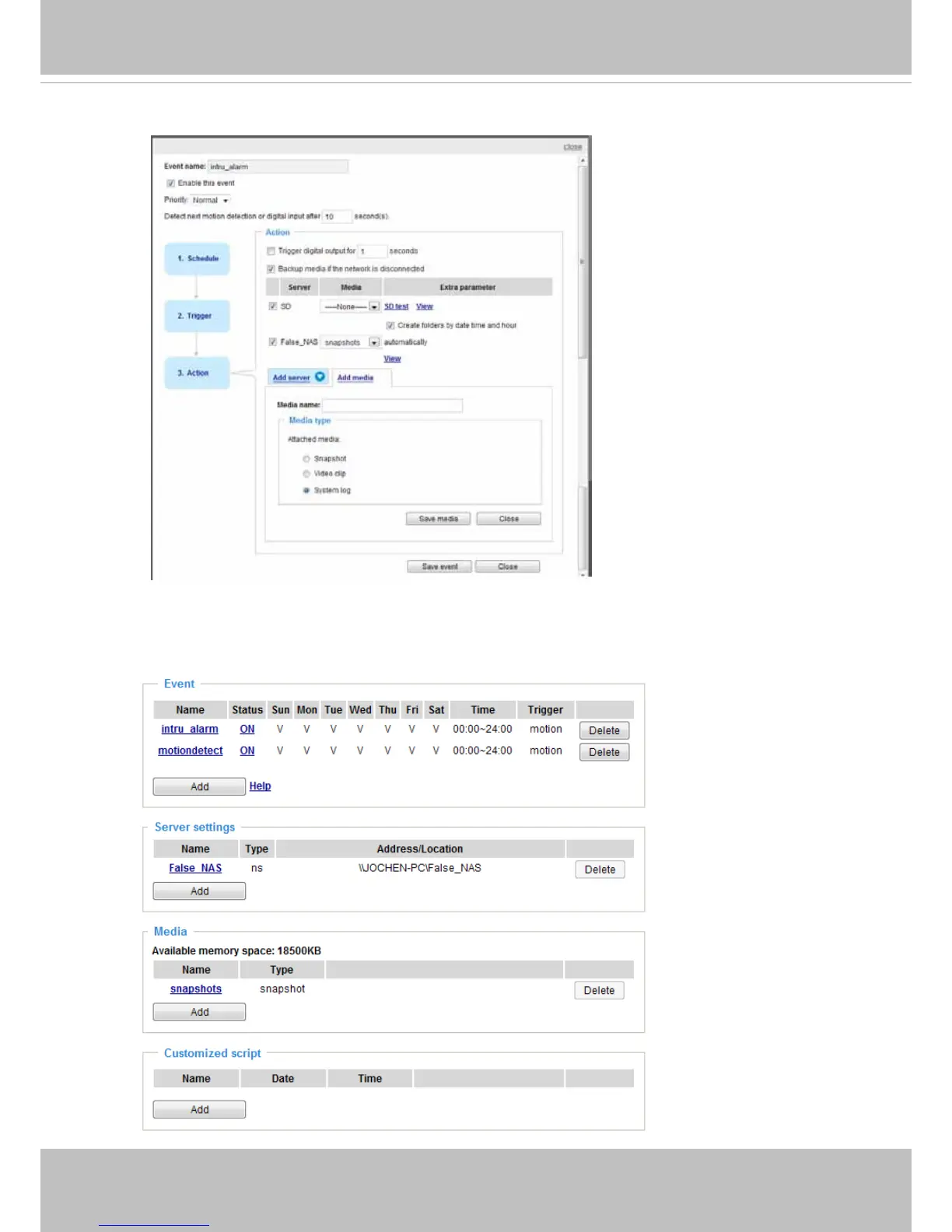 The following is an example of the Event setting page: