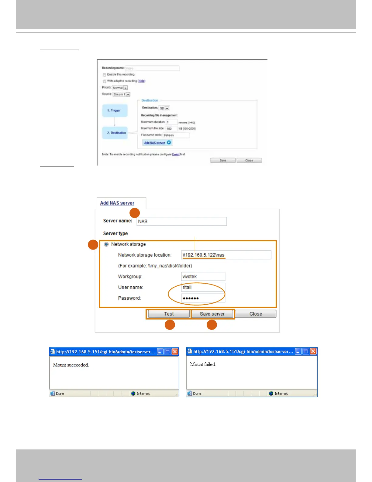 Click Add NAS server to open the server setting window and follow the steps below to set up:
