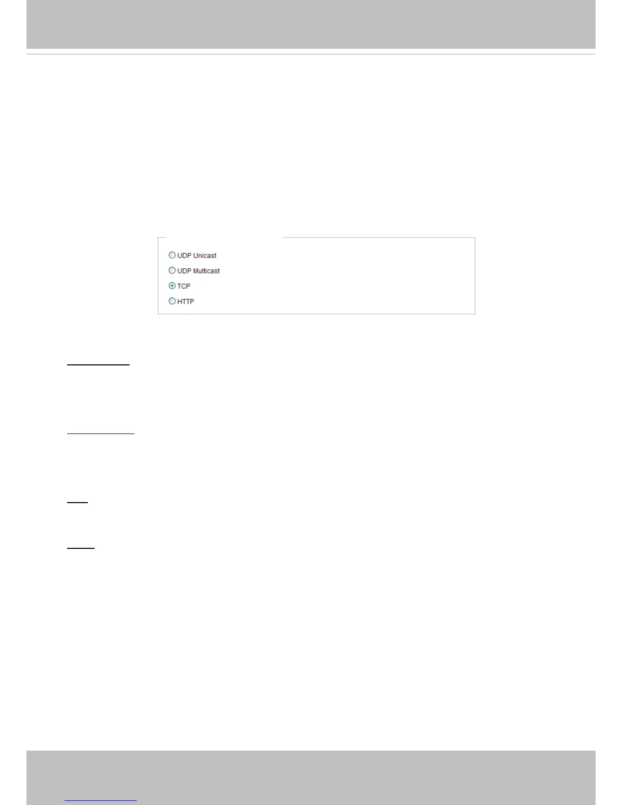 HTTP: This protocol allows the same quality as TCP protocol without needing to open specic ports for