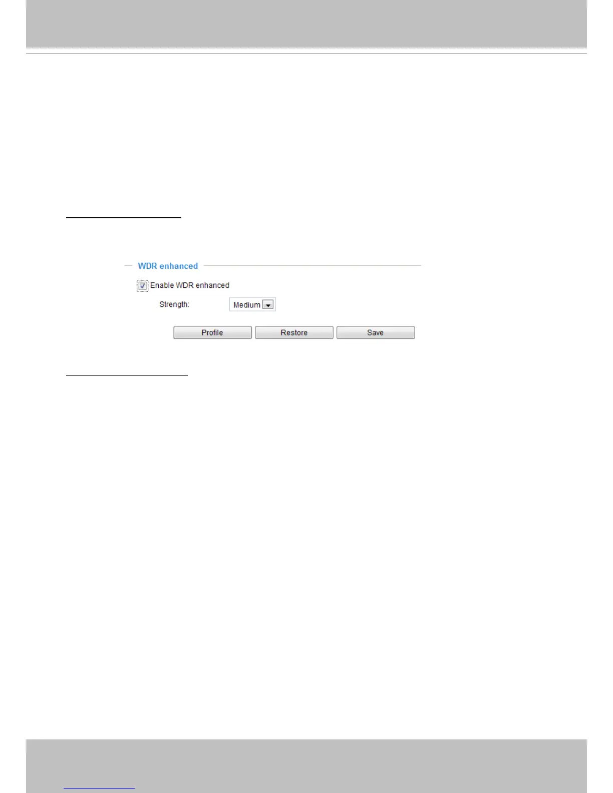 You may select the Enable WDR enhanced checkbox, and then adjust the strength (low, medium, high)
