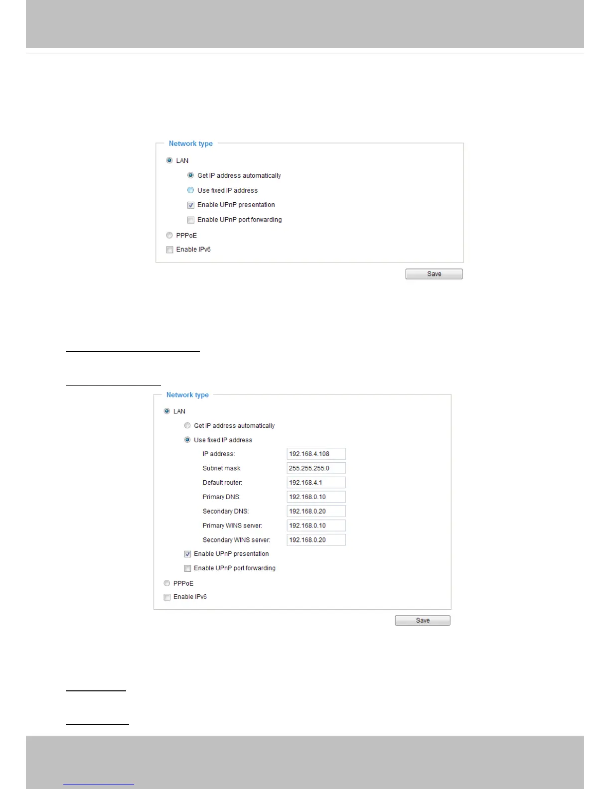 Use xed IP address: Select this option to manually assign a static IP address to the Network Camera.
