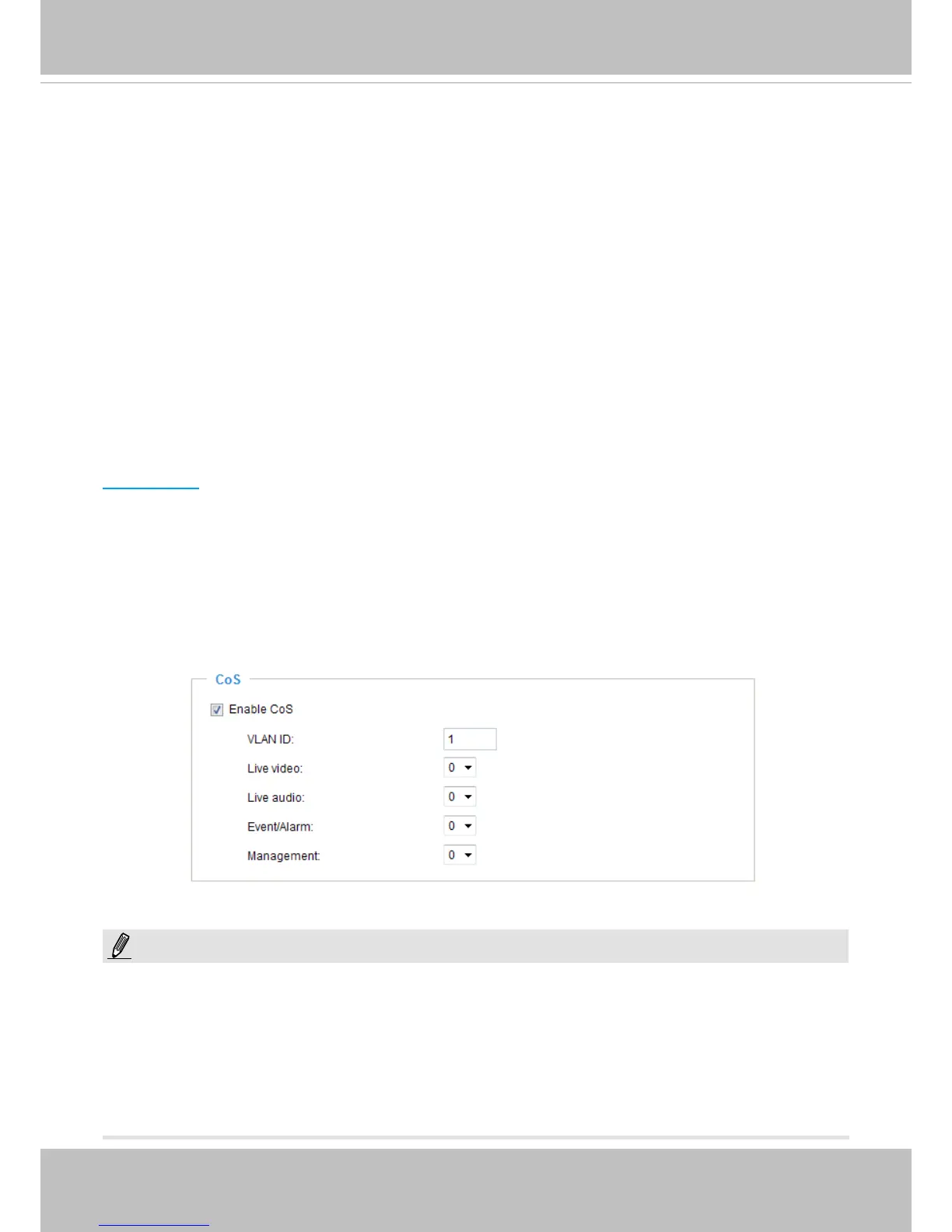 Below is the setting column for CoS. Enter the VLAN ID of your switch (0~4095) and choose the priority