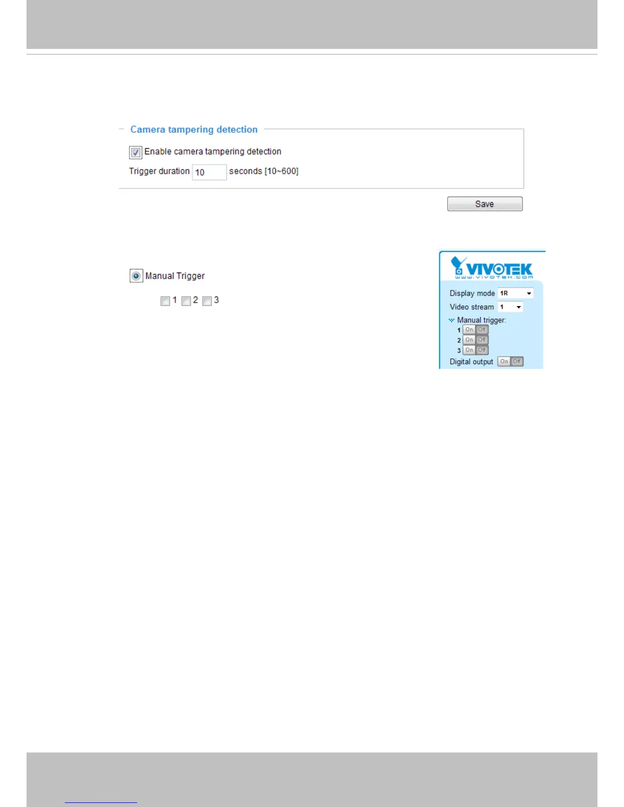 This option allows the Network Camera to trigger when the camera detects that is is being tampered