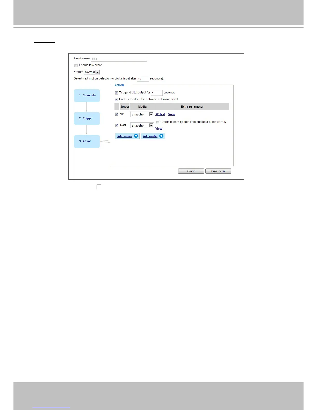 To congure an event with video recording or snapshots, it is necessary to congure/provide servers and