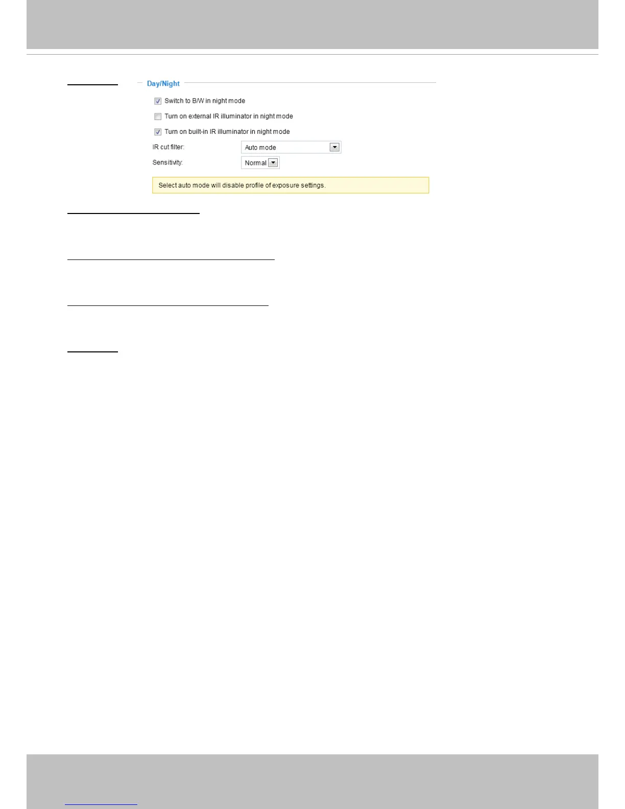 ■ Auto mode (The Day/Night Exposure Prole will not be available if Auto mode is selected)