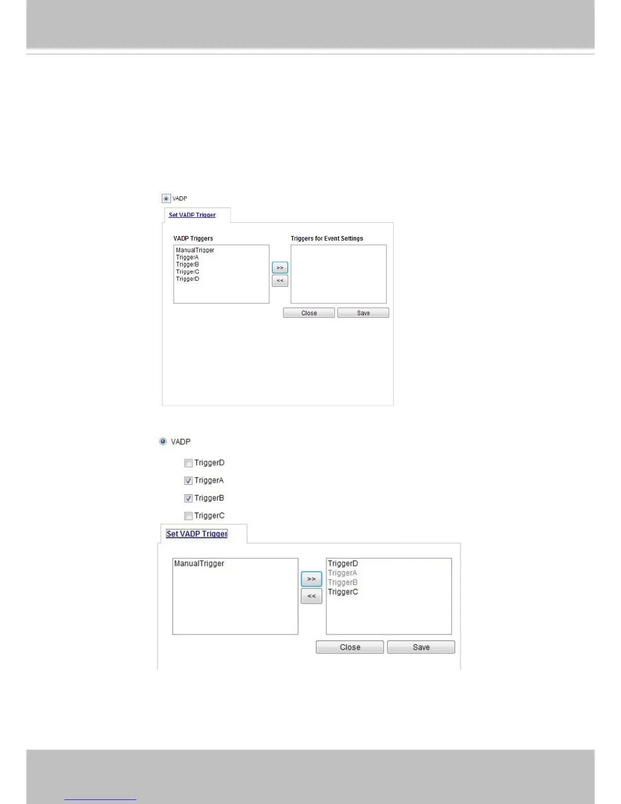 Click on the Set VADP Trigger button to open the VADP setup menu. The triggering conditions