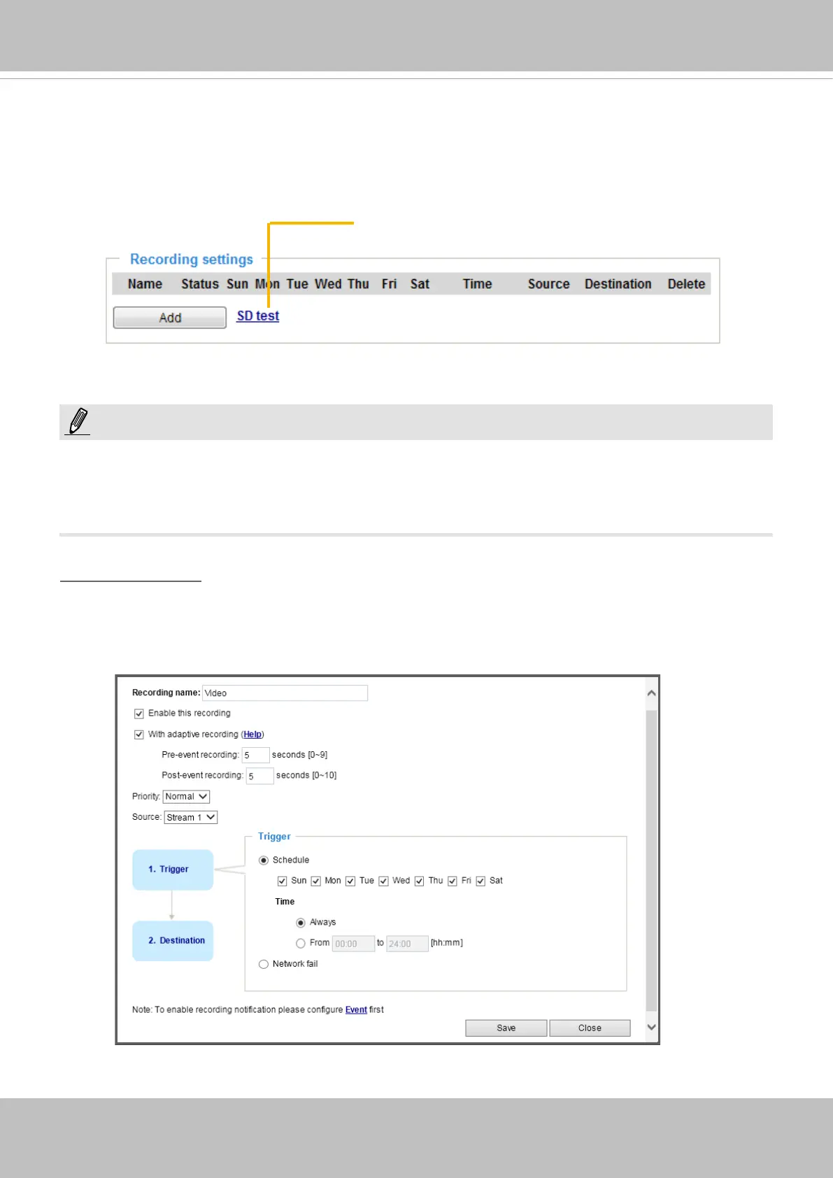 Click Add to open the recording setting window. On this page, you can dene the adaptive recording,
