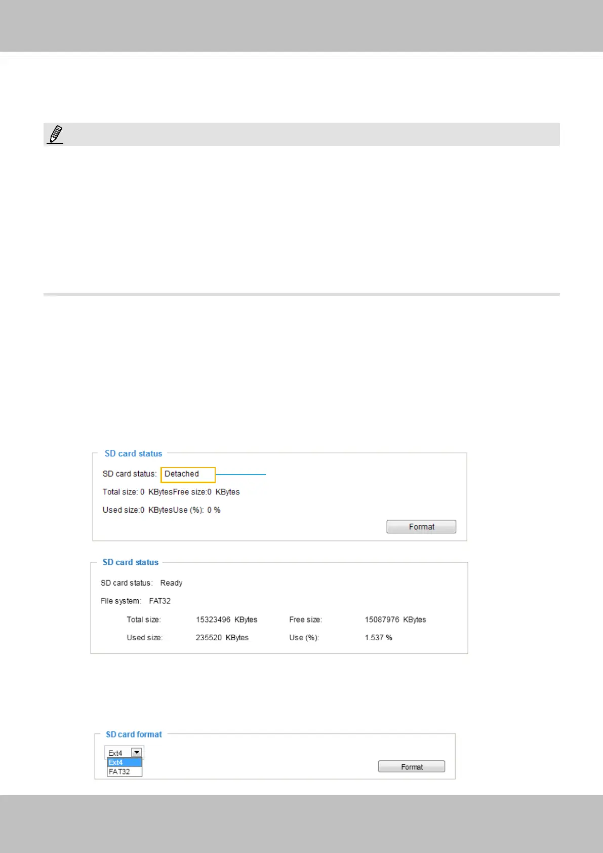 This section explains how to manage the local storage on the Network Camera. Here you can