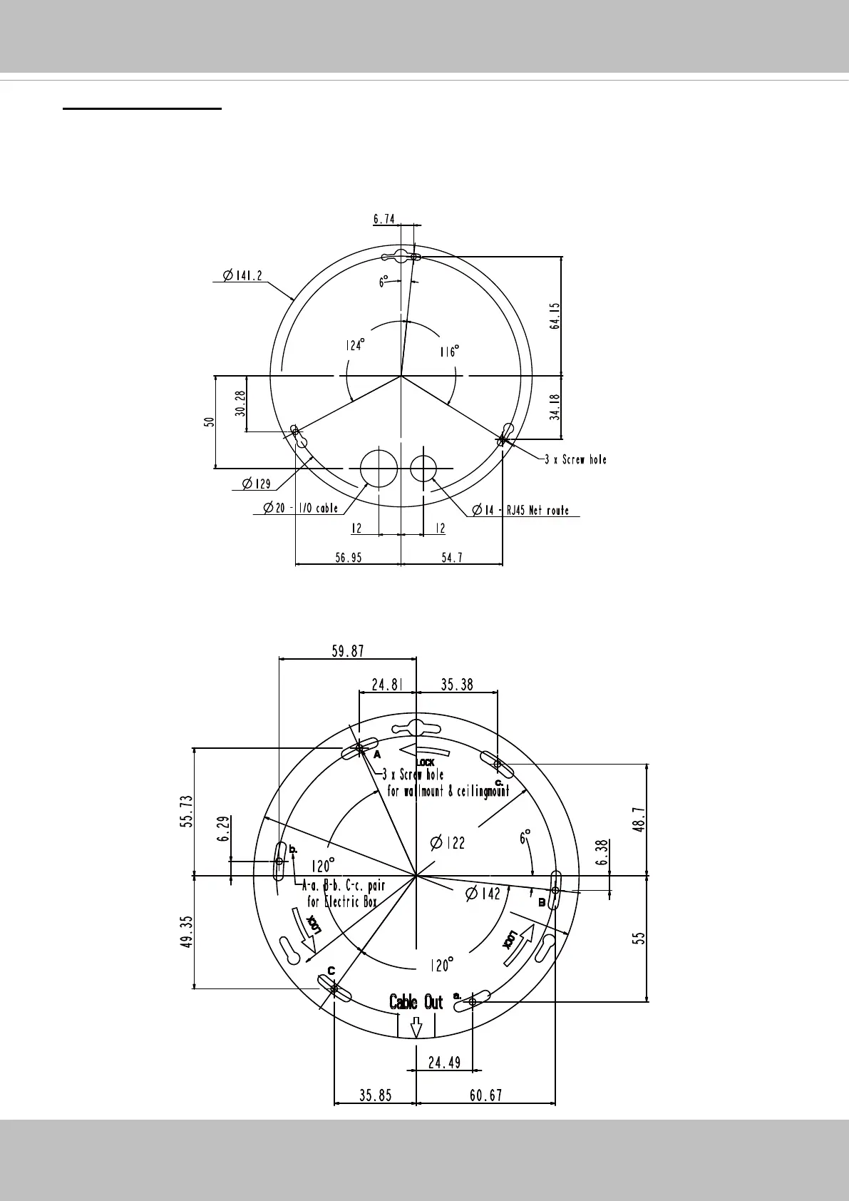Refer to the diagram on the right for the mounting hole positions and the dimensions of the base