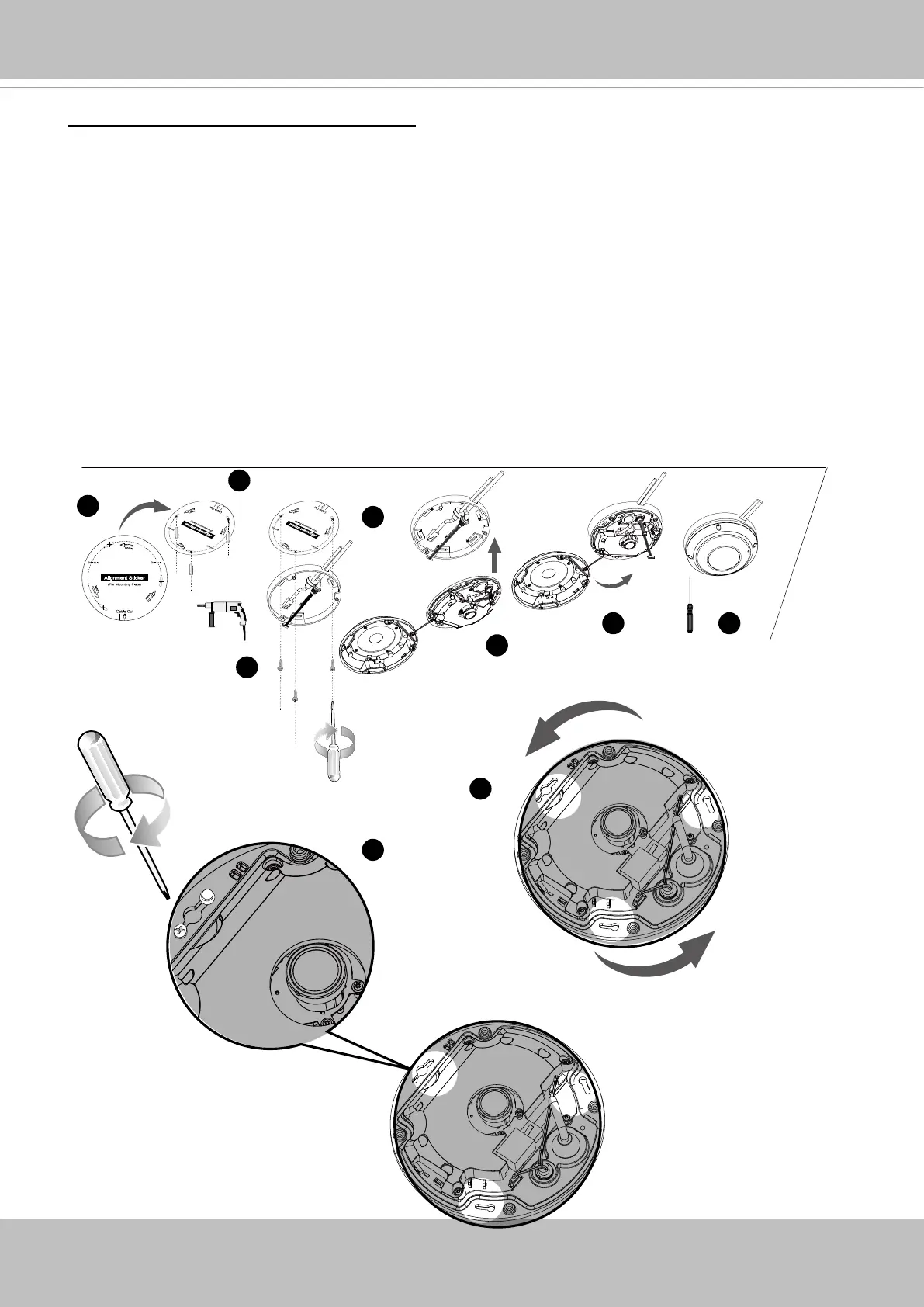 1. Attach the supplied alignment sticker for the supplied mounting plate to the ceiling/wall.