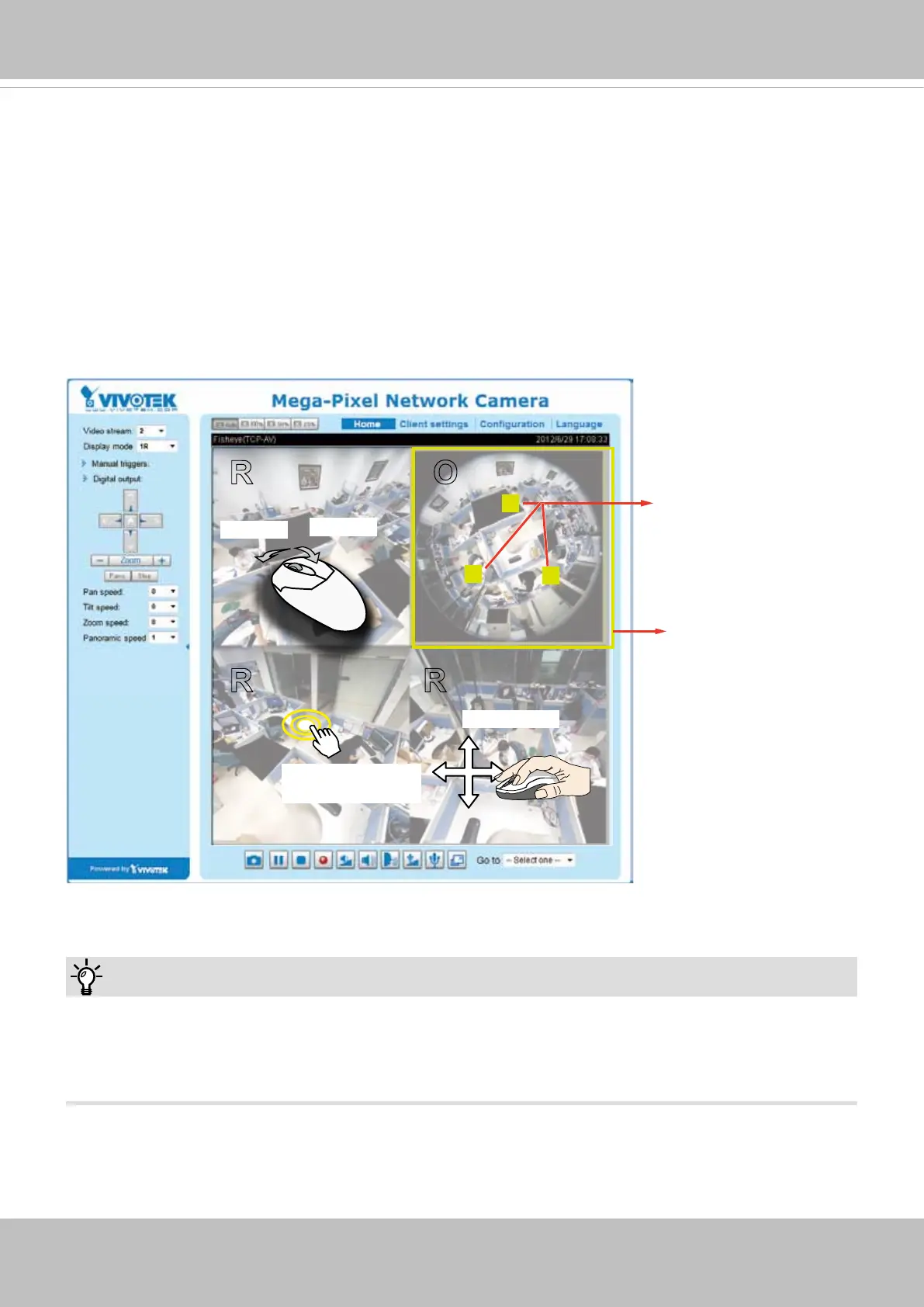 In a Regional view displaying 100% of video feed (via the Resize buttons - see page 42), your