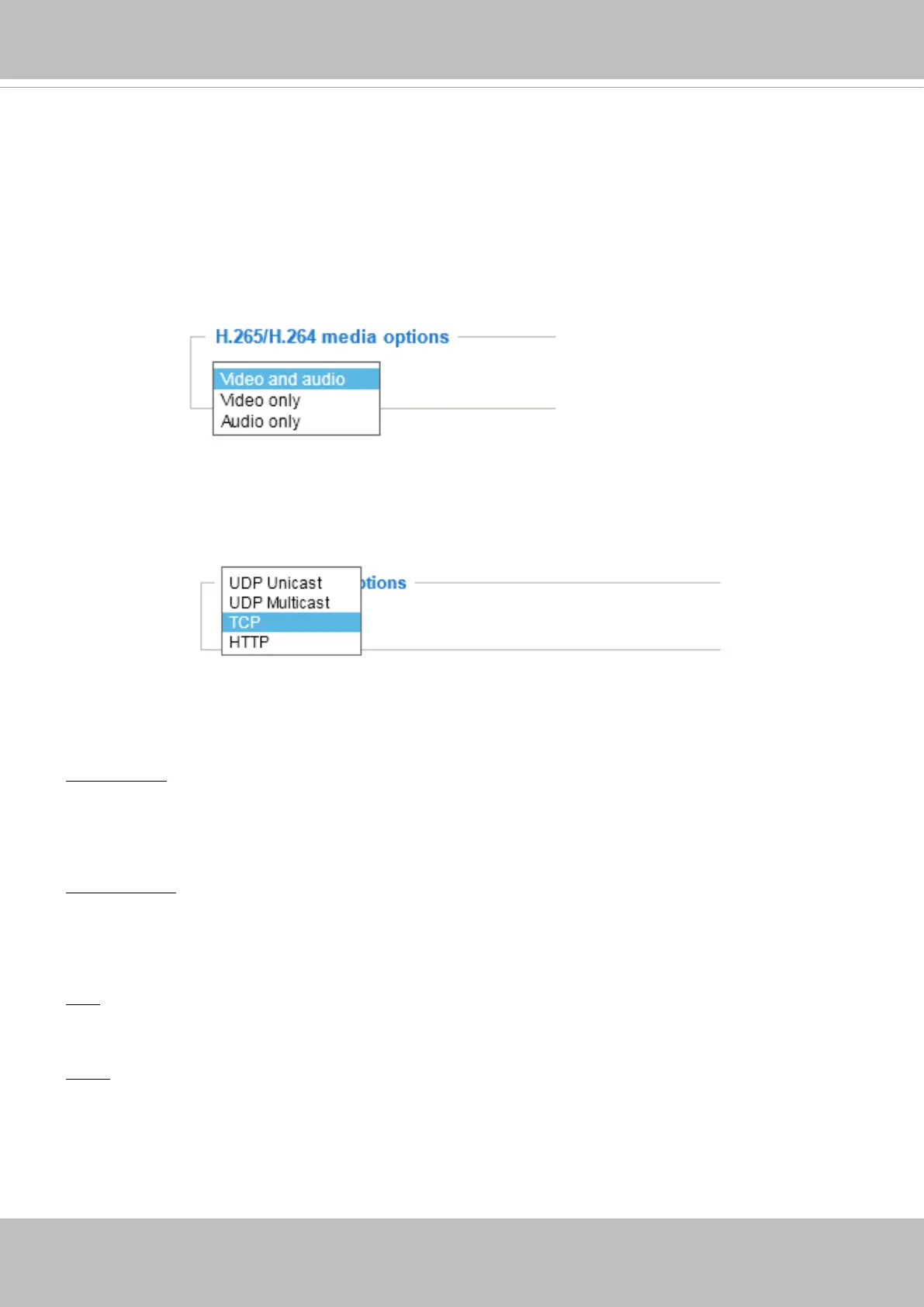Select to stream video or audio data or both. This is enabled only when the video mode is set to H.265 or