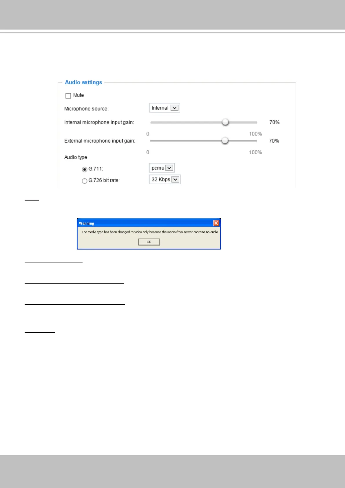 Mute: Select this option to disable audio transmission from the Network Camera to all clients. Note that