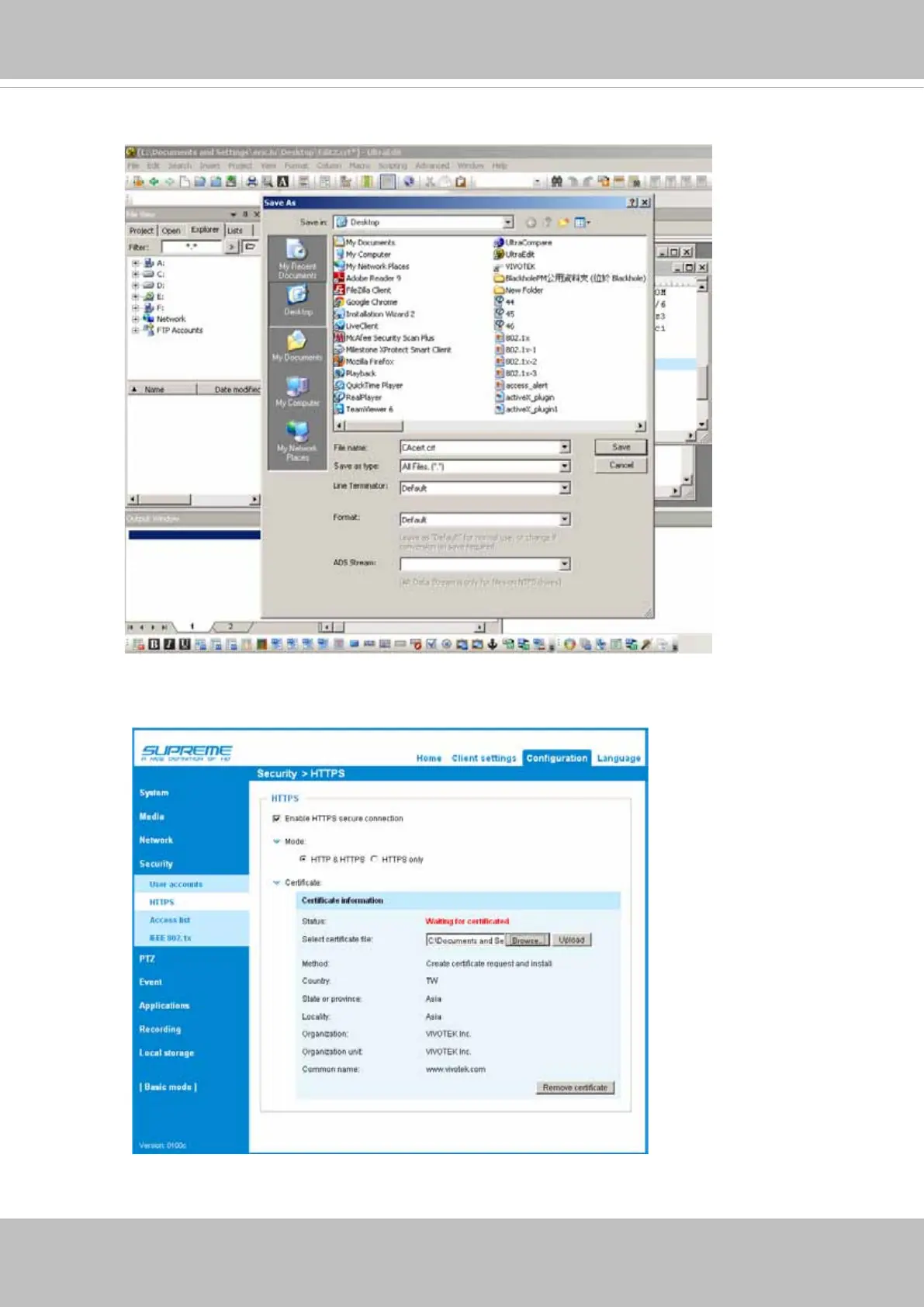 10. Return to the original rmware session, use the Browse button to locate the crt certicate le, and