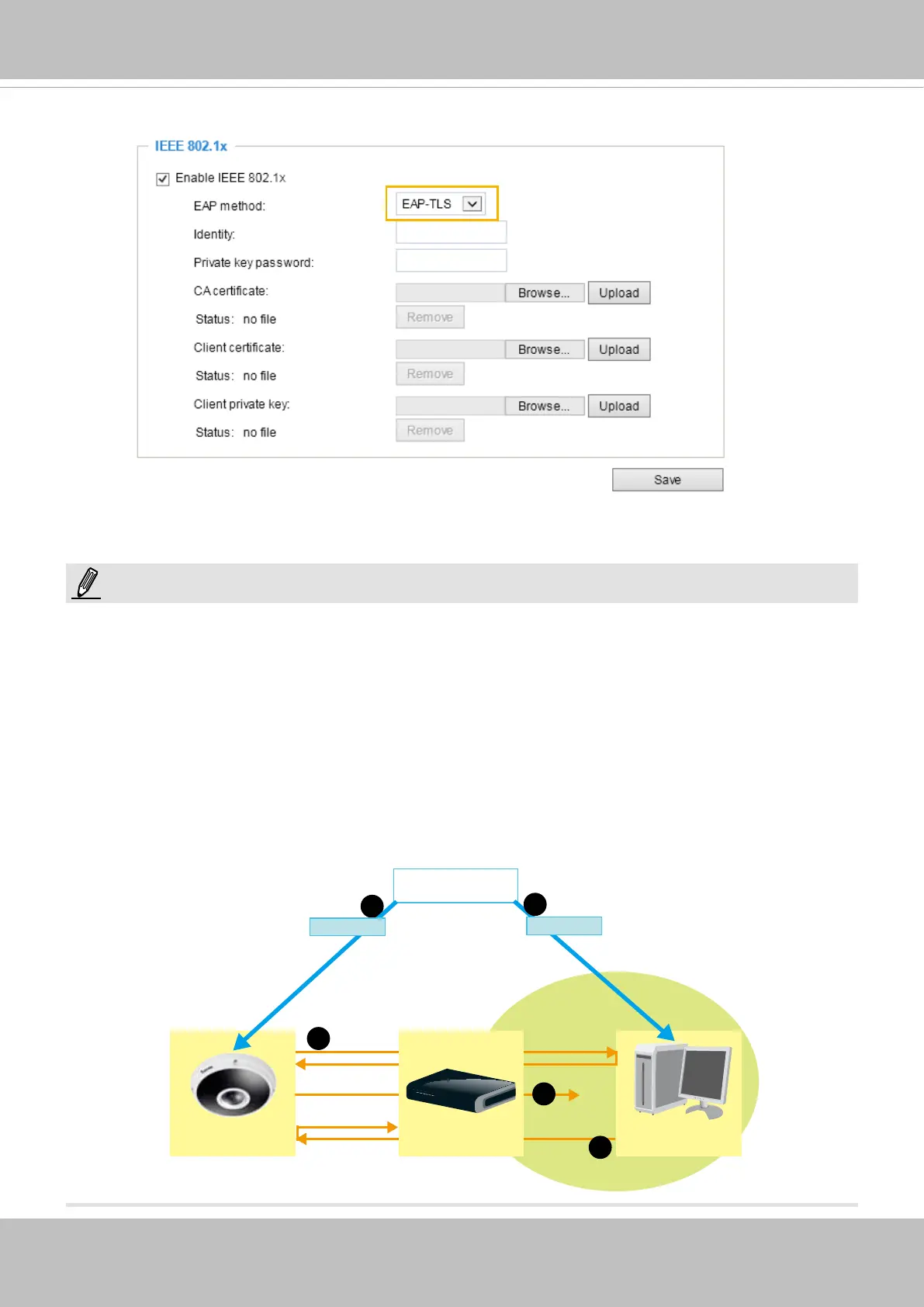 3. The switch also forwards the RADIUS Server’s certicate to the Network Camera.