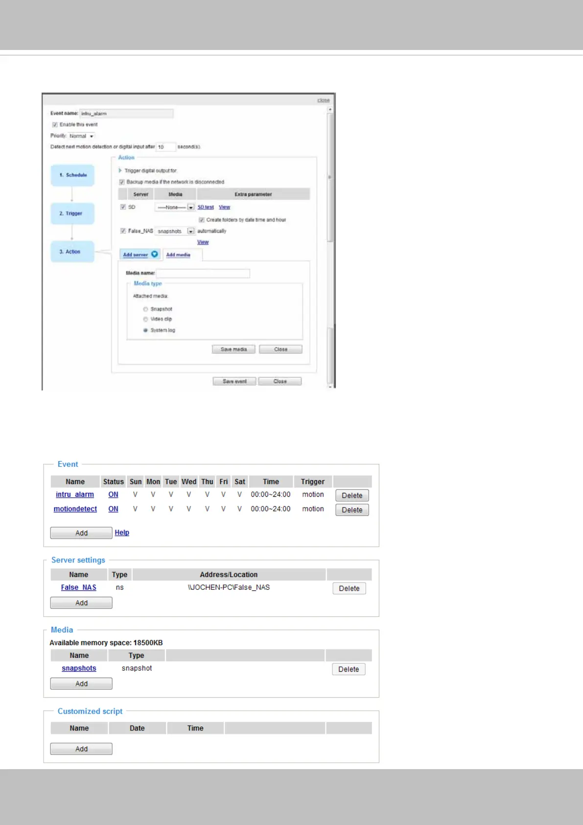 The following is an example of the Event setting page: