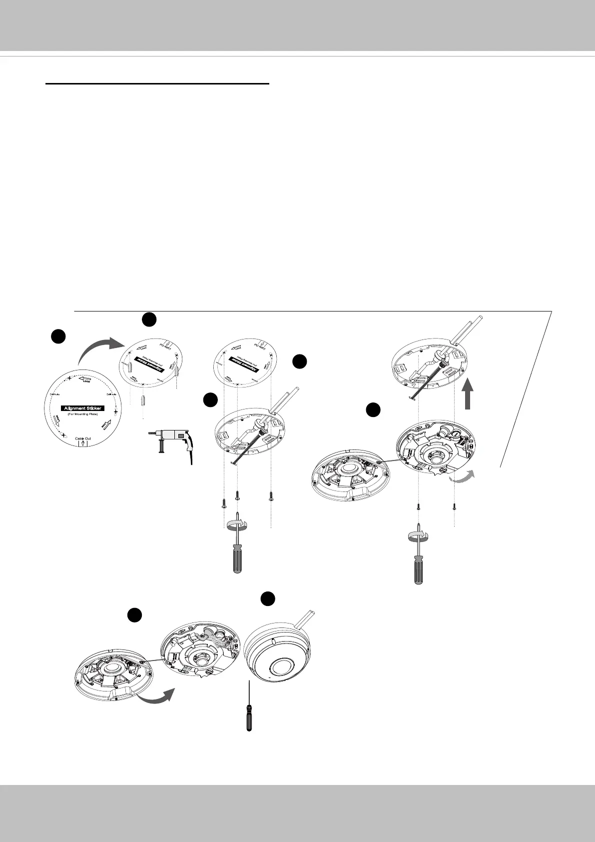 1. Attach the supplied alignment sticker for the supplied mounting plate to the ceiling/wall.