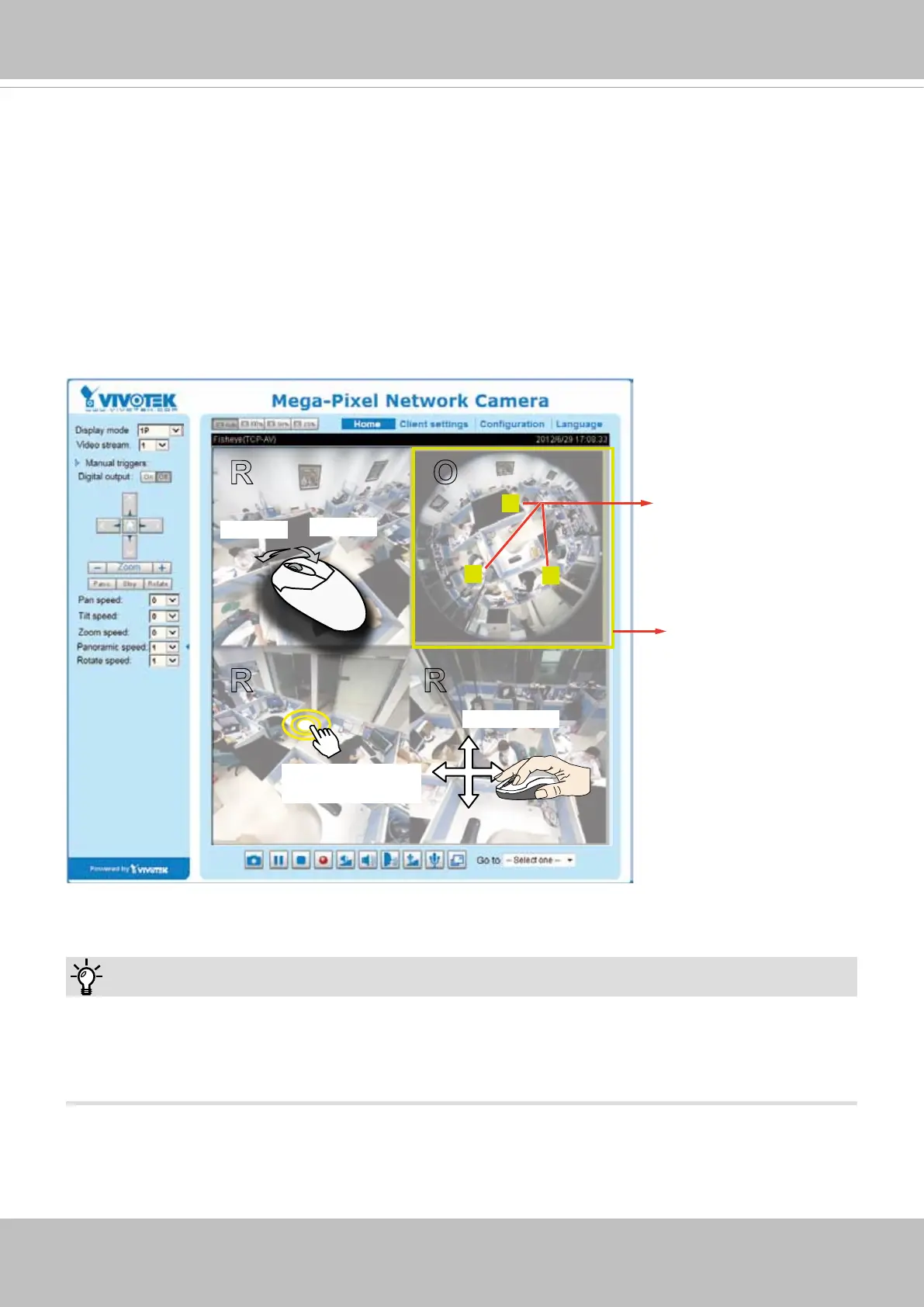 In a Regional view displaying 100% of video feed (via the Resize buttons - see page 42), your