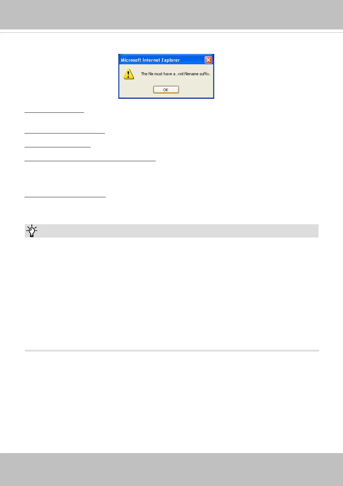 The following message is displayed when attempting to upload an incorrect le format.