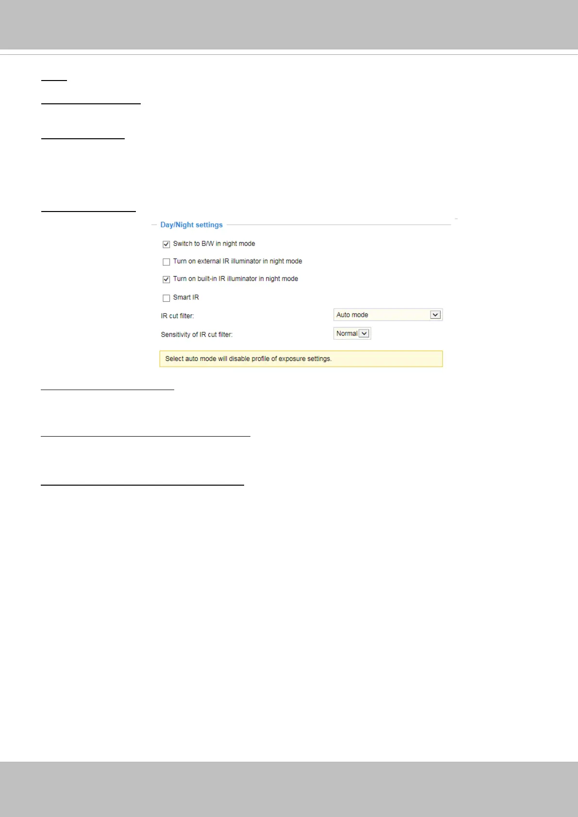 Select this to turn on the camera’s onboard IR illuminator when the camera detects low light condition