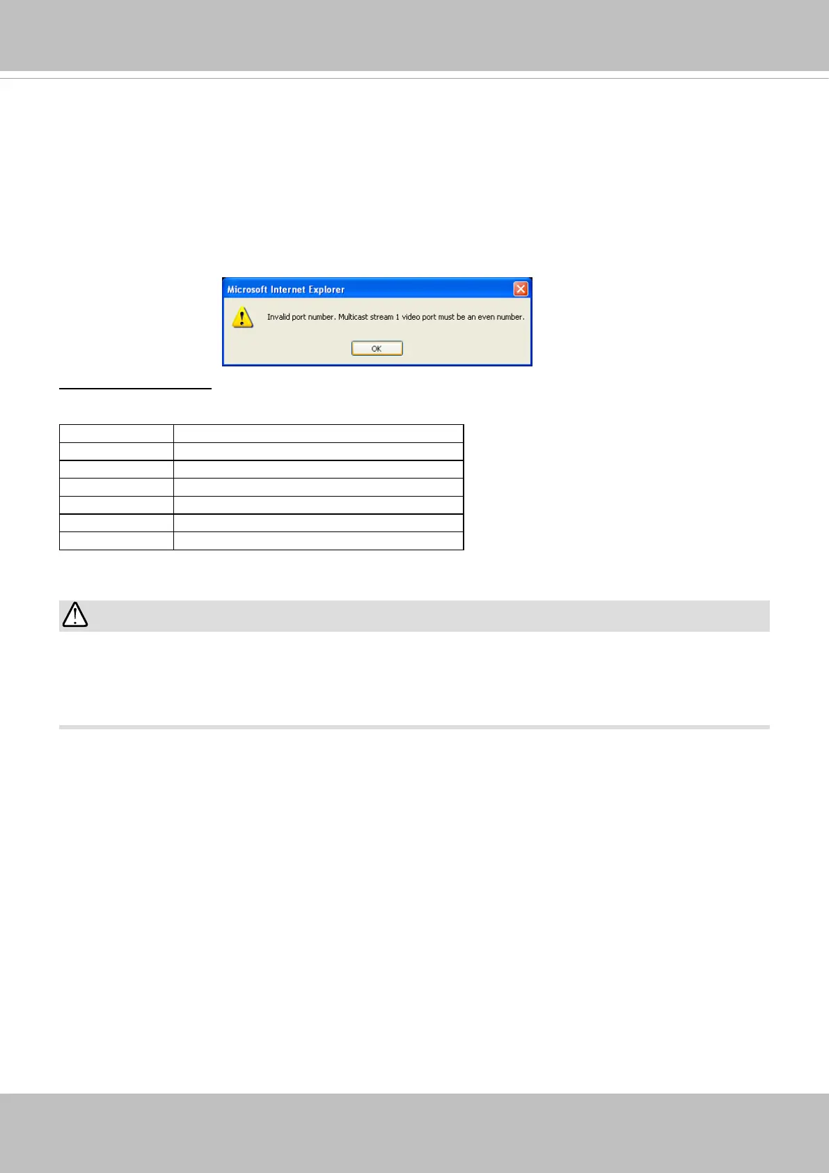 If the multicast RTP video ports are incorrectly assigned, the following warning message will be
