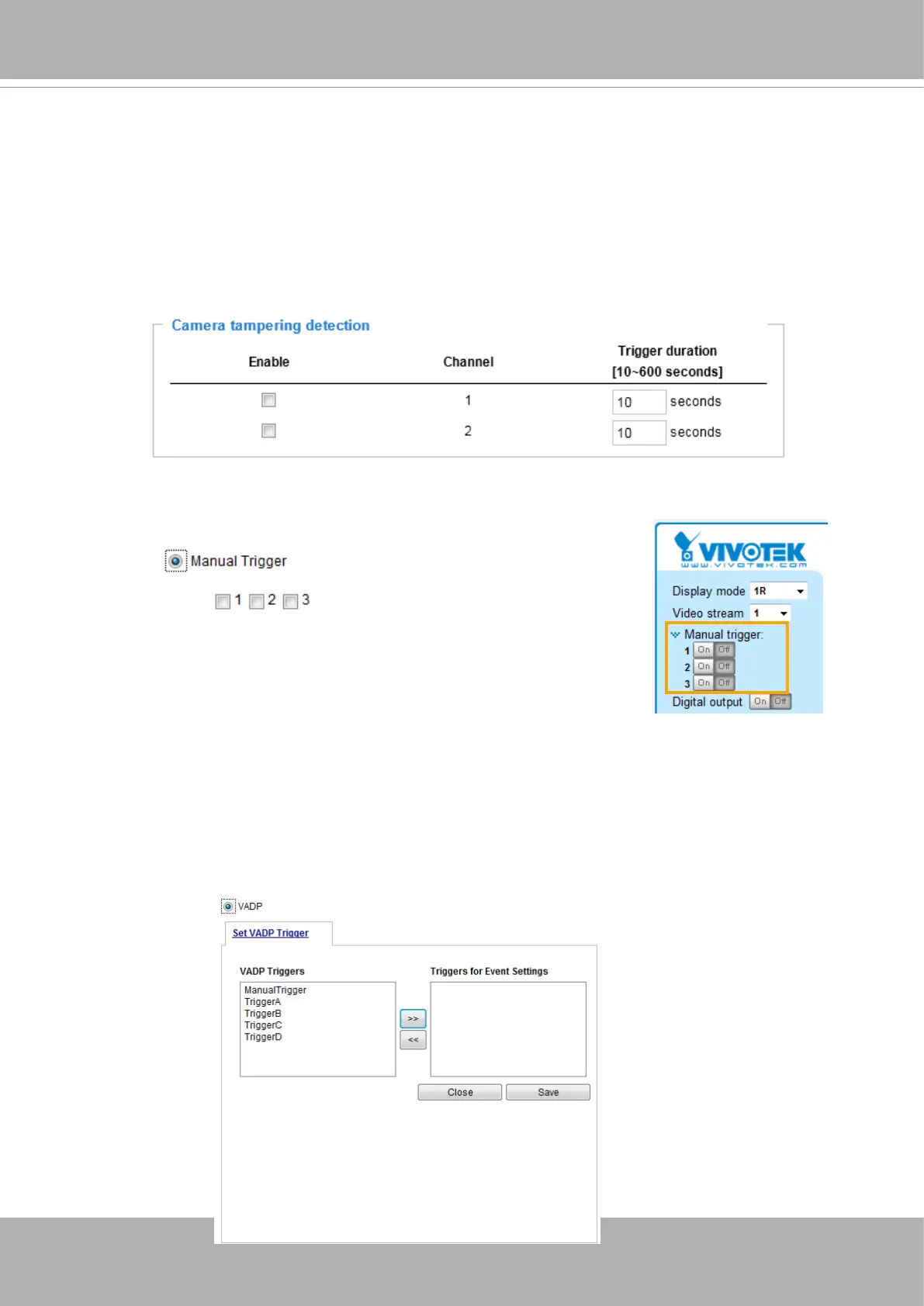 This option allows the Network Camera to trigger when the camera detects that is is being tampered