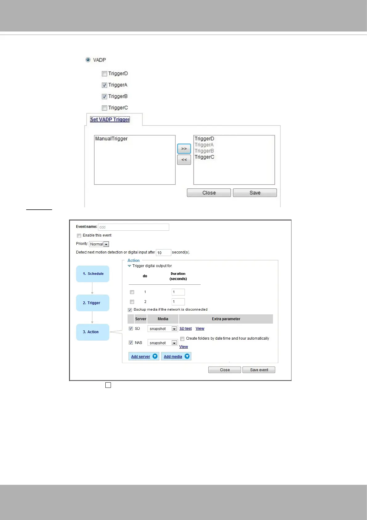 To congure an event with video recording or snapshots, it is necessary to congure/provide servers and