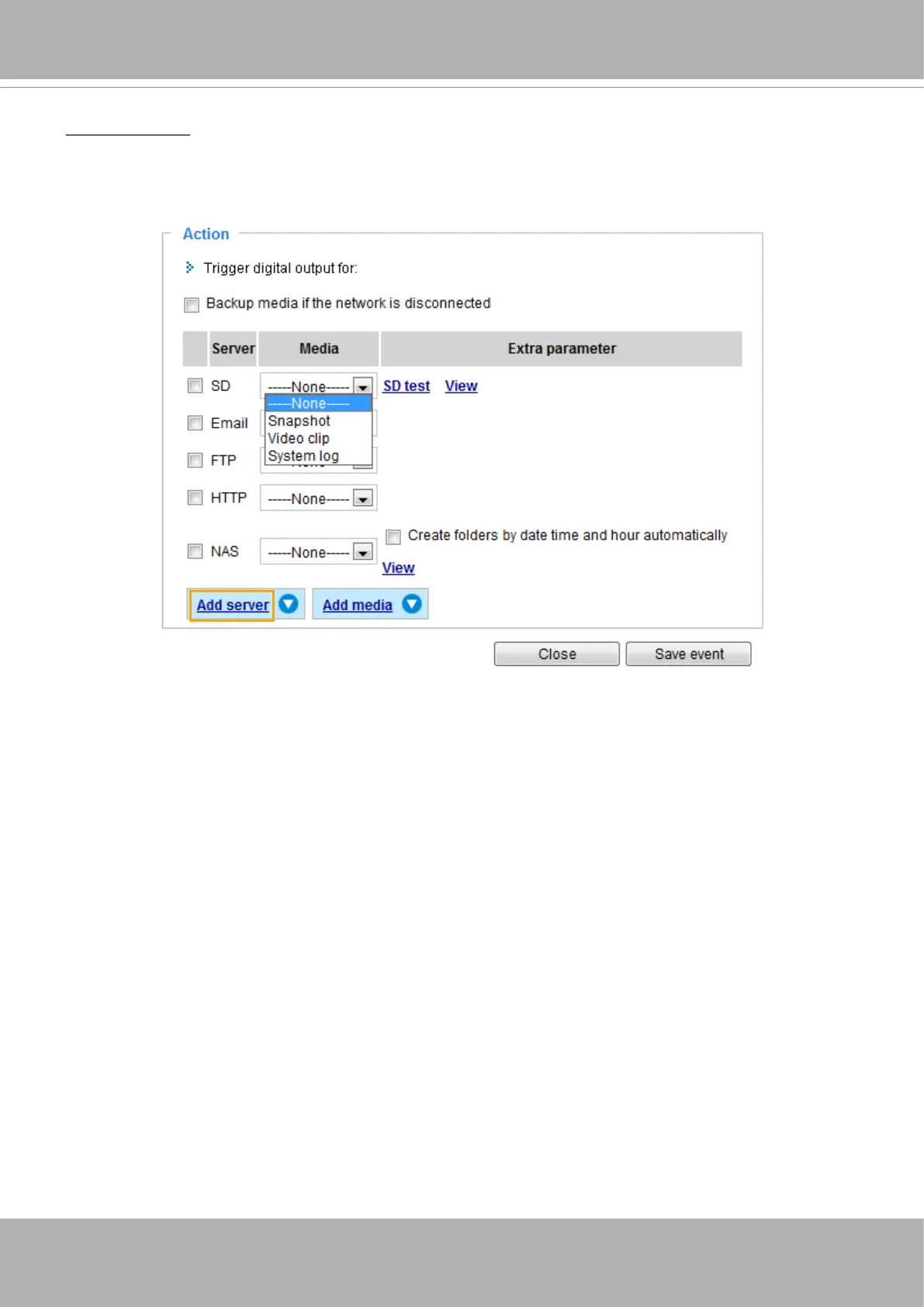 Select to send the media les to a network storage location when a trigger is activated. Please refer to