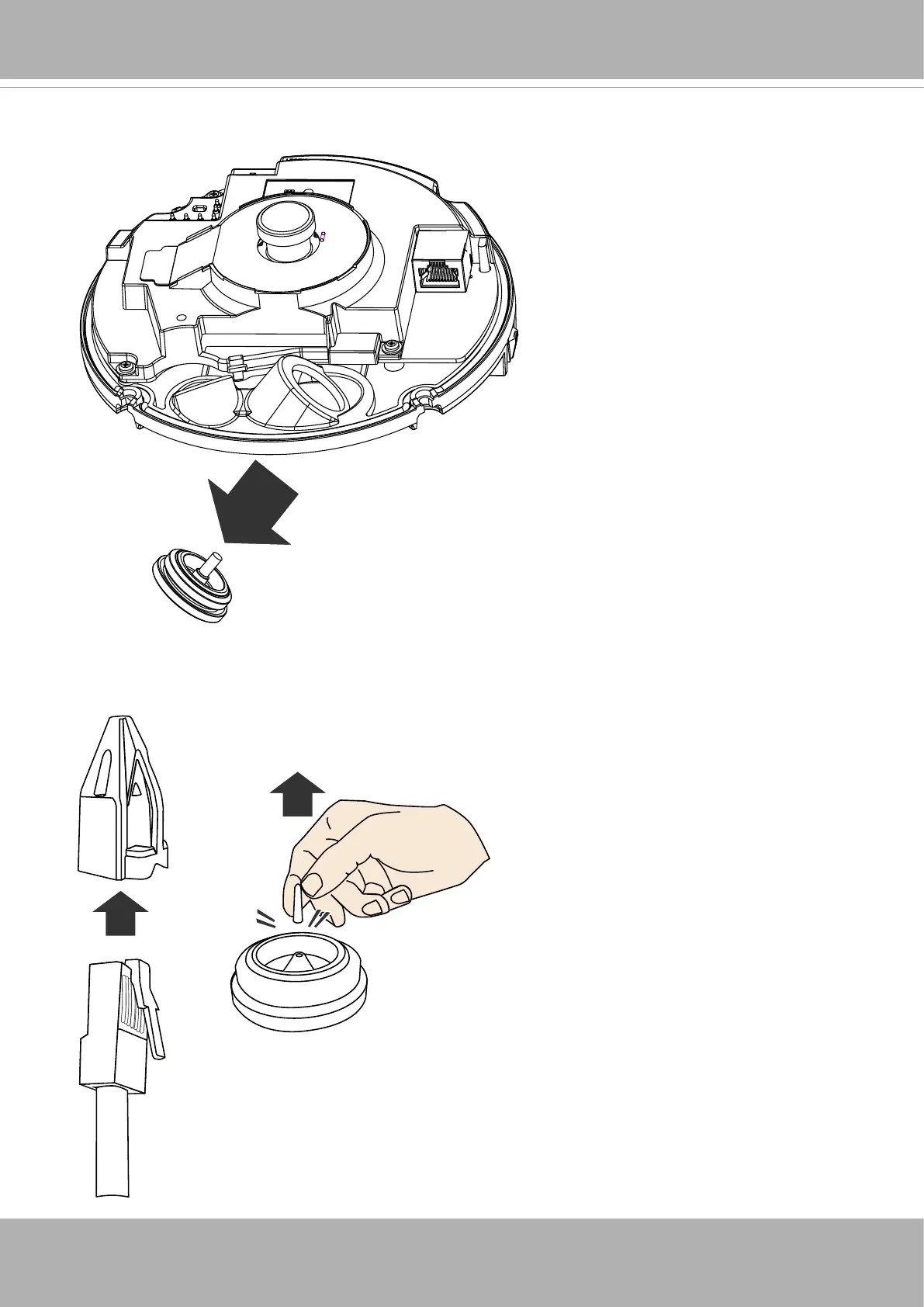 8. Remove the tip of the silicone seal by pulling it o󰀨. Insert the RJ45 connector of your Ethernet