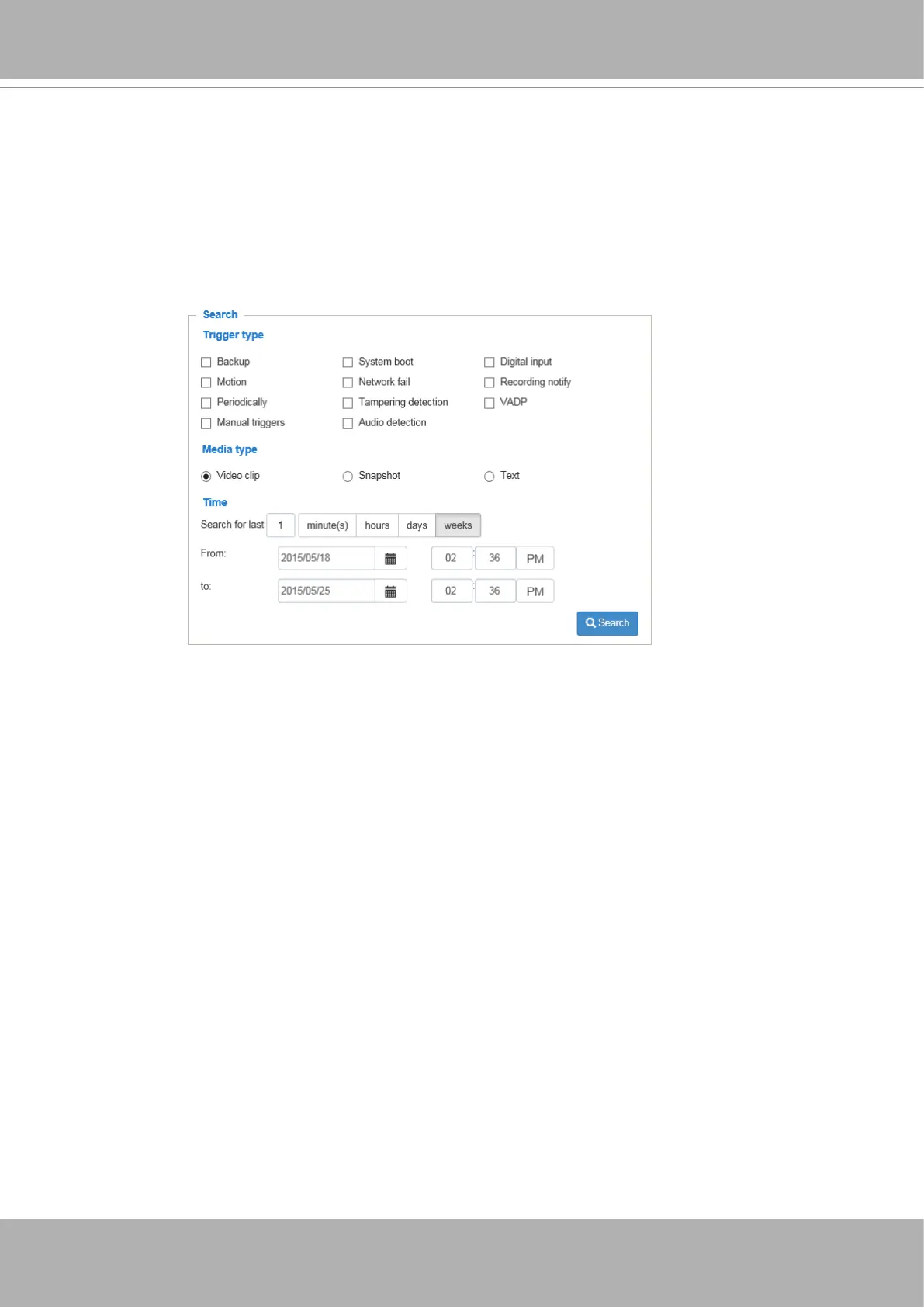 ■ Trigger time: Manually enter the time range you want to search for contents created at a specic point