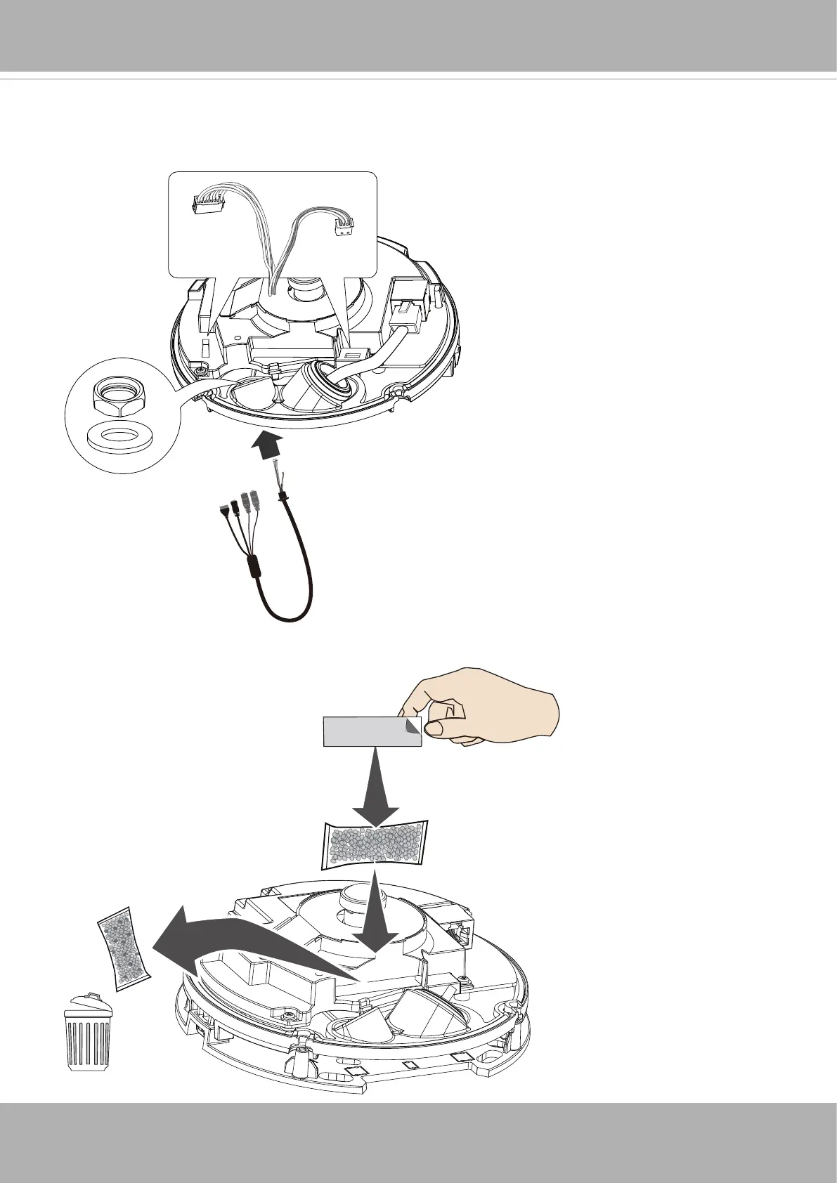 the cabling hole. Using a crescent wrench, tighten a hex nut and washer to waterproof the