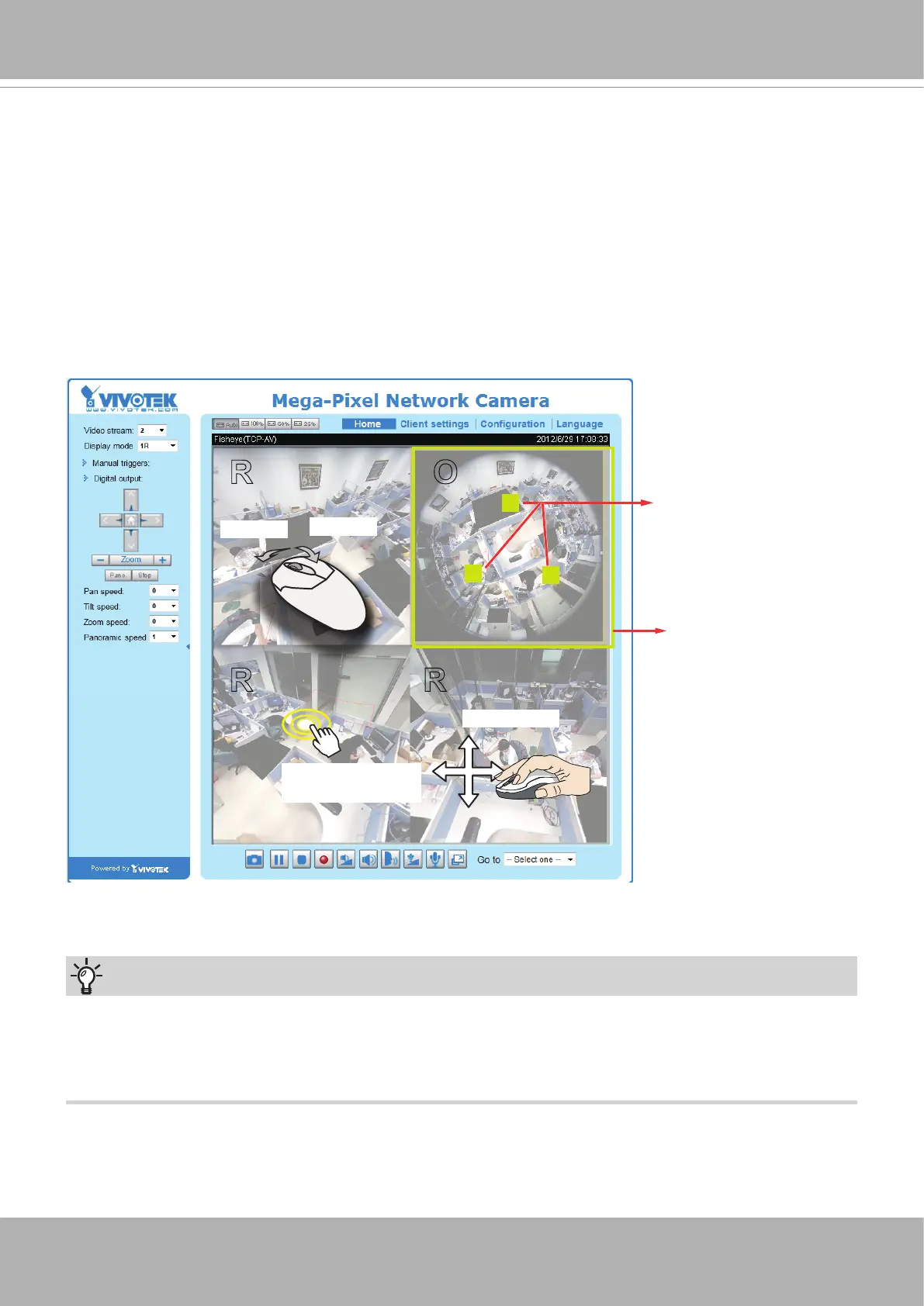 In a Regional view displaying 100% of video feed (via the Resize buttons - see page 44), your