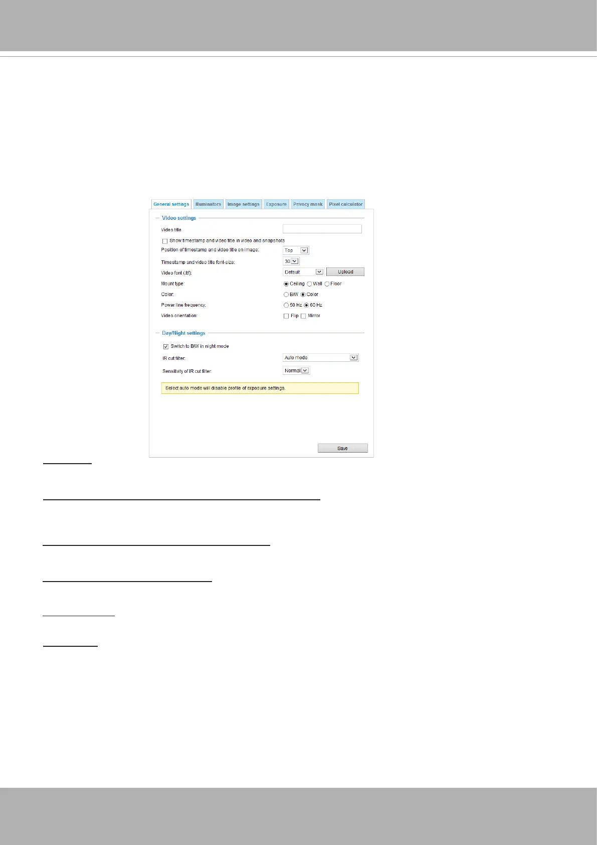 Show timestamp and video title in videos and snapshots: Enter a name that will be displayed on the title
