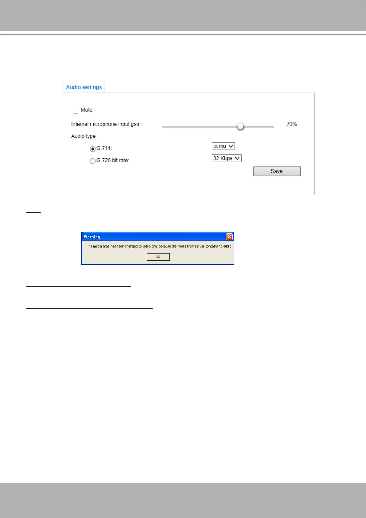 Audio type: Select audio codec as G.711 or G.726 and the bit rate.