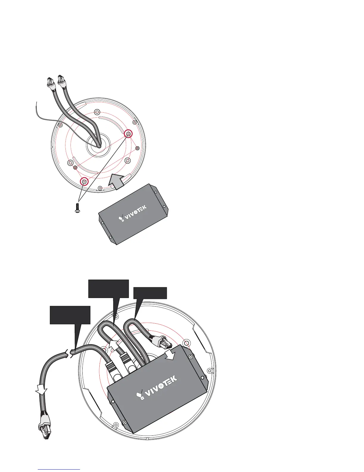 3. When done, install the PoE extender by driving 2 screws to the conduit box, its