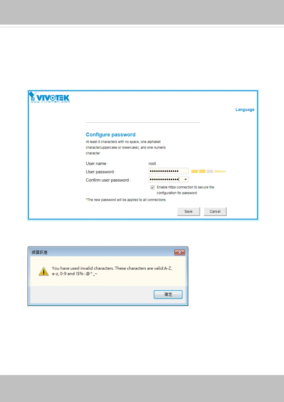 requirement. The default name for the camera administrator is “root”, and can not be