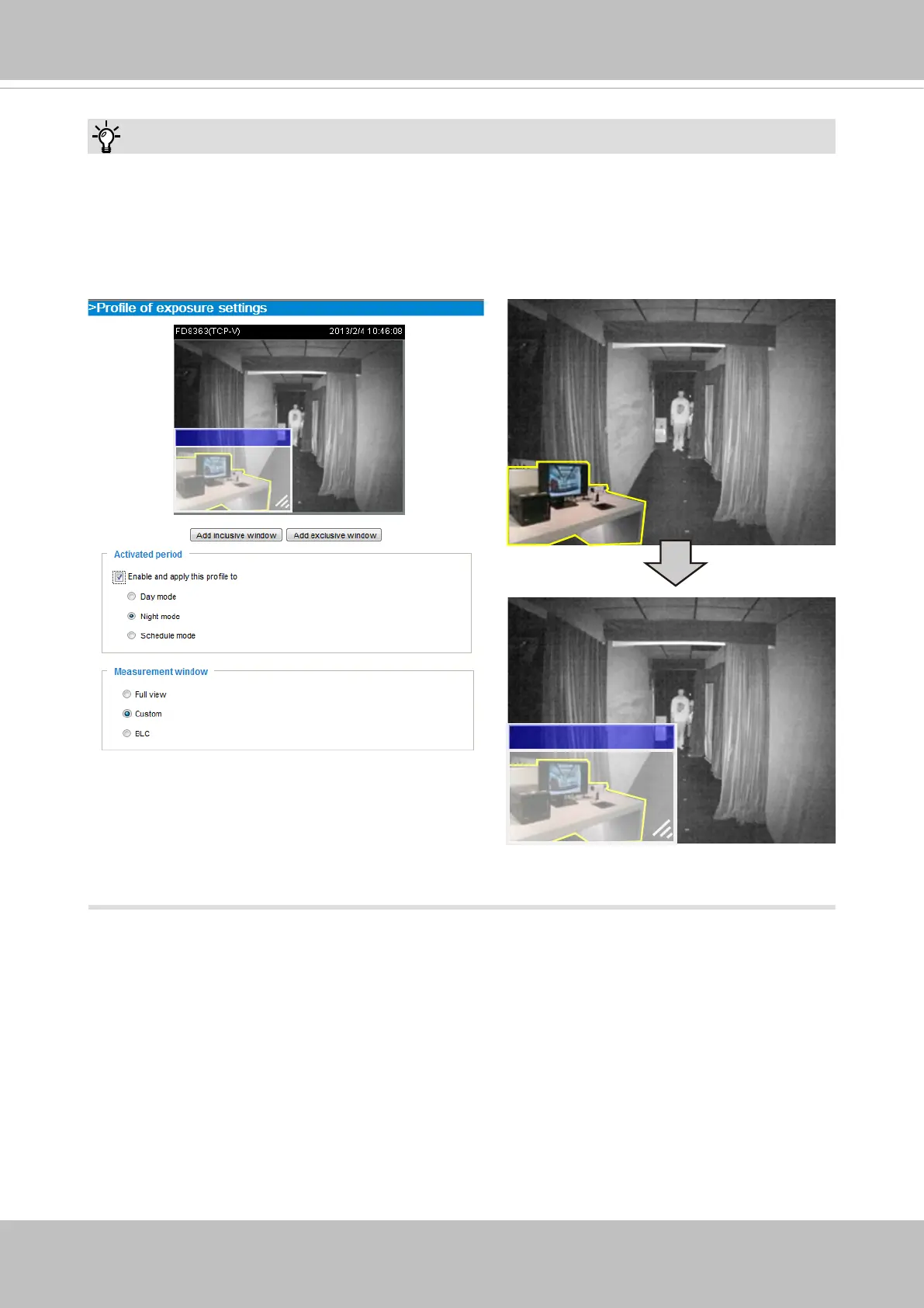 You can also configure the “Exposure Exclude” window in a night mode “Profile” setting so that
