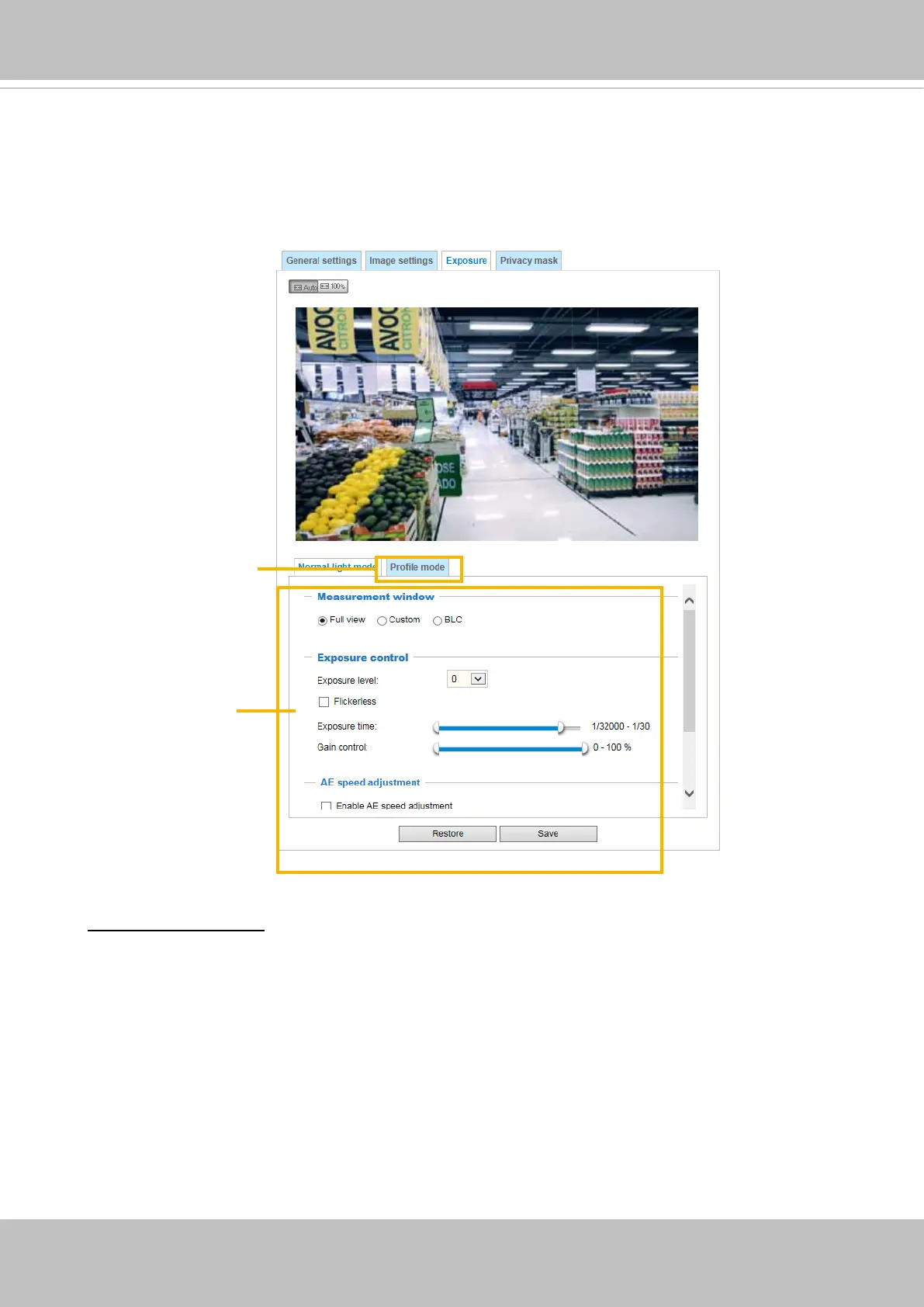 On this page, you can congure the Exposure measurement window, Exposure level, Exposure