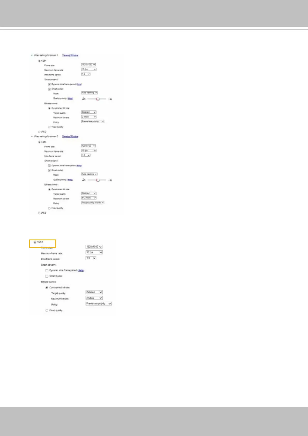 size and a higher bit rate for live viewing on web browsers, or recording the stream to an NVR.