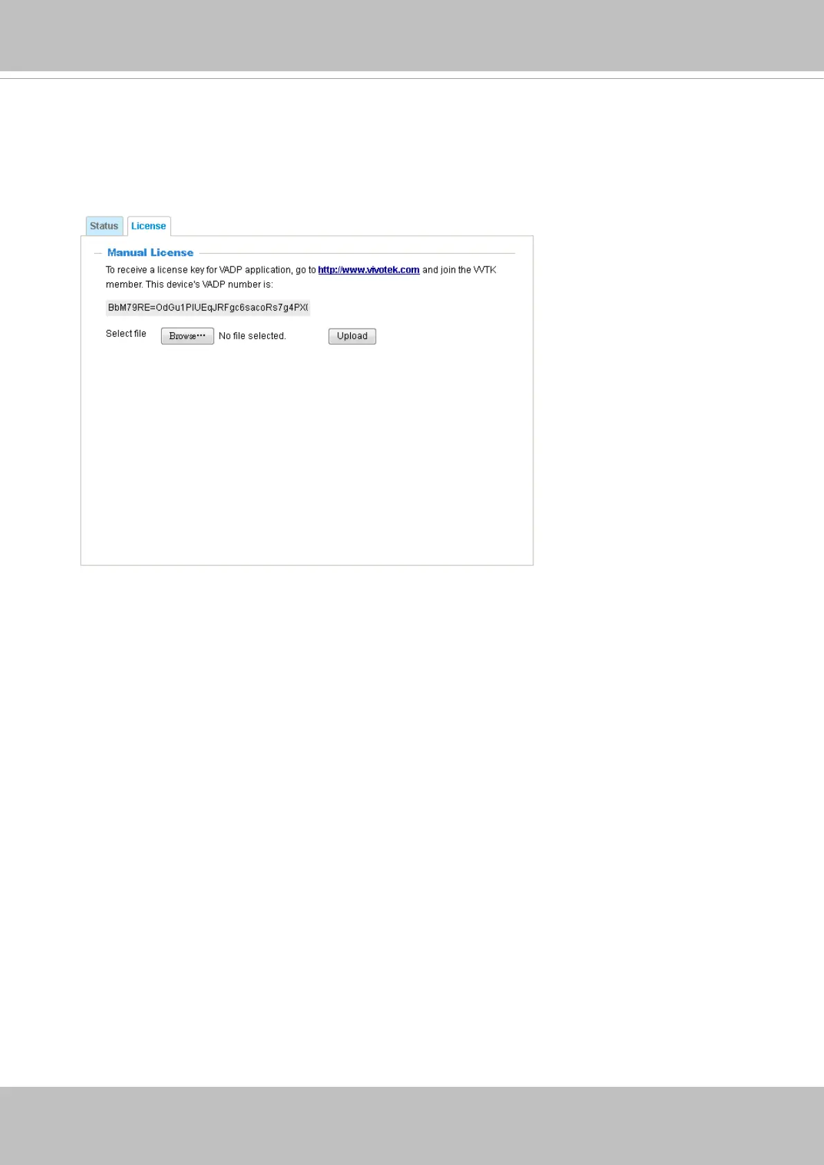 On the License page, register and activate the license for using VIVOTEK's VADP
