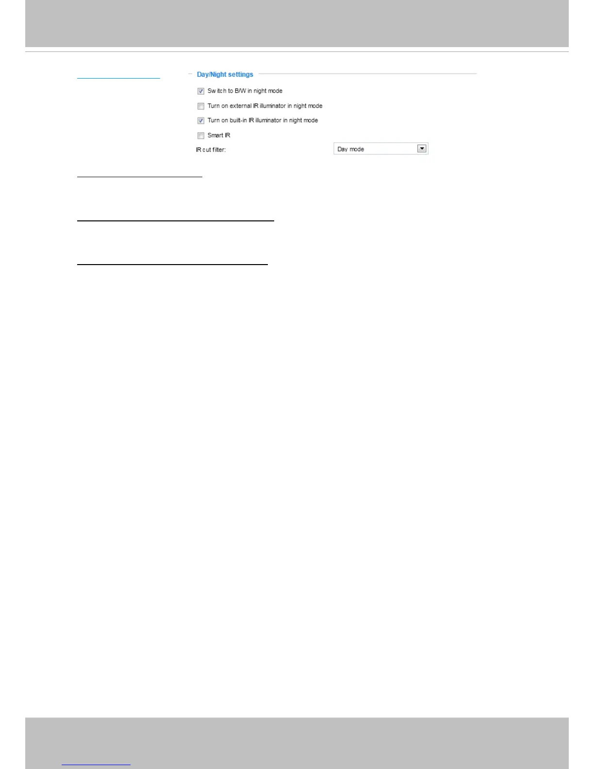 Select this to turn on the camera’s onboard IR illuminator when the camera detects low light