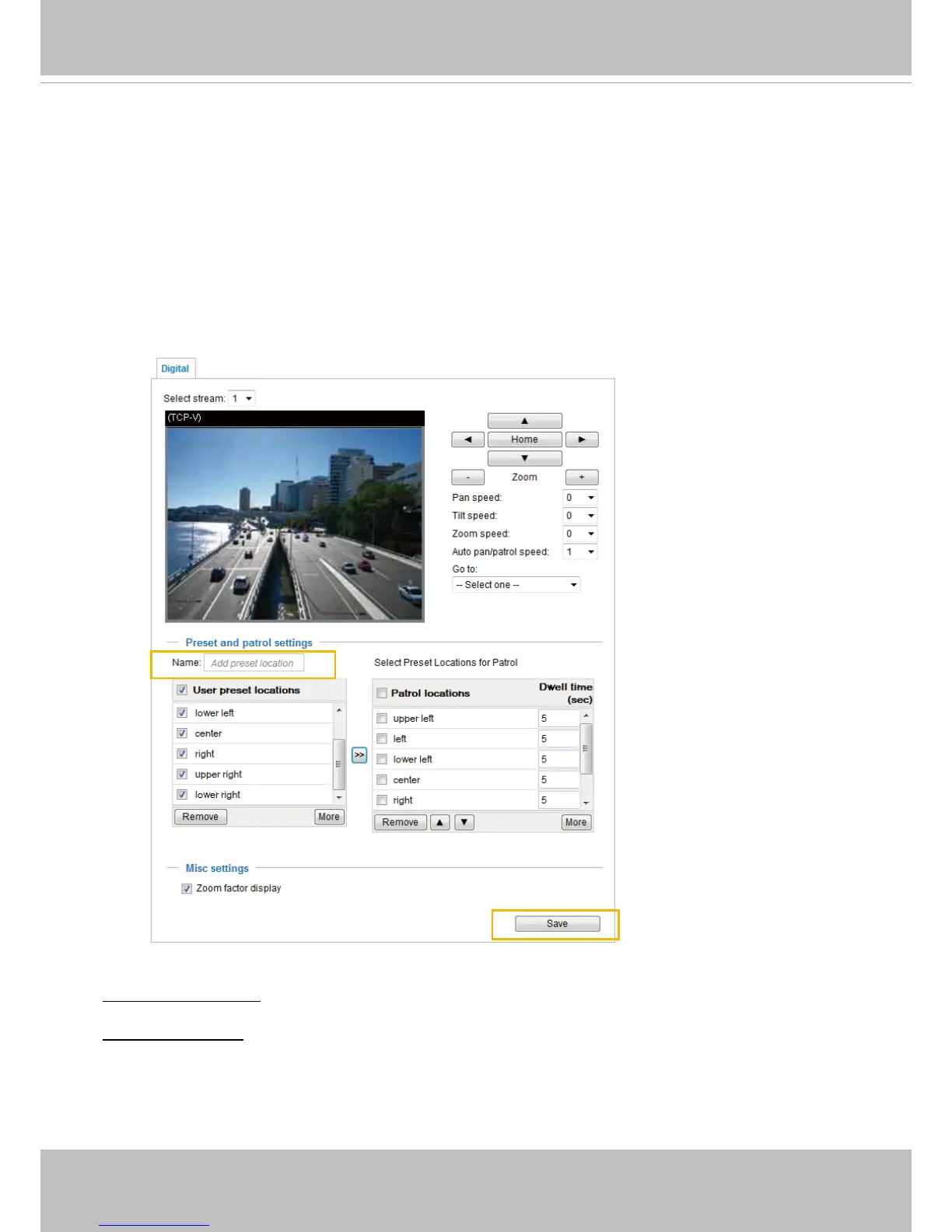 When completed with the e-PTZ settings, click Save to enable the settings on this page.