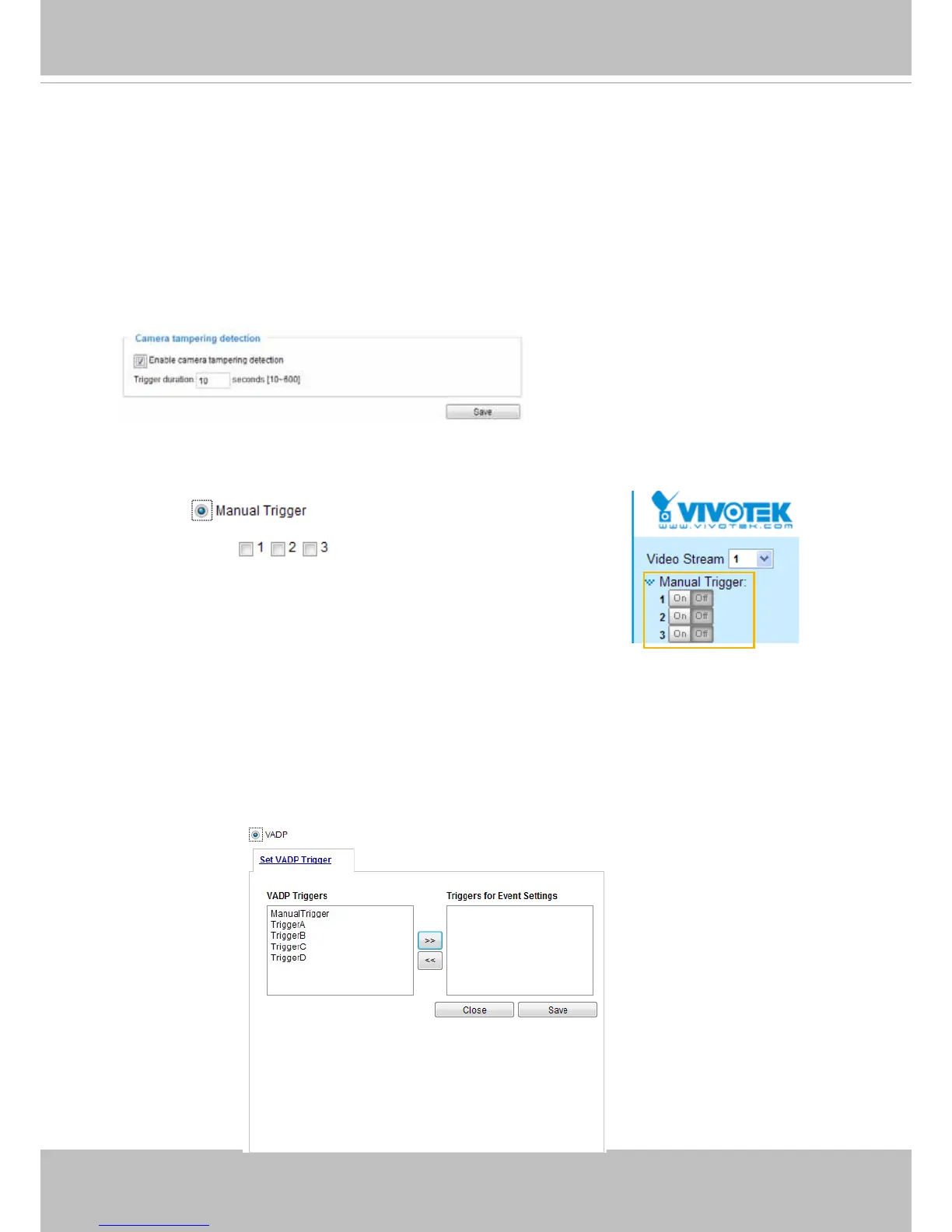 This option allows the Network Camera to trigger when the camera detects that is is being tampered