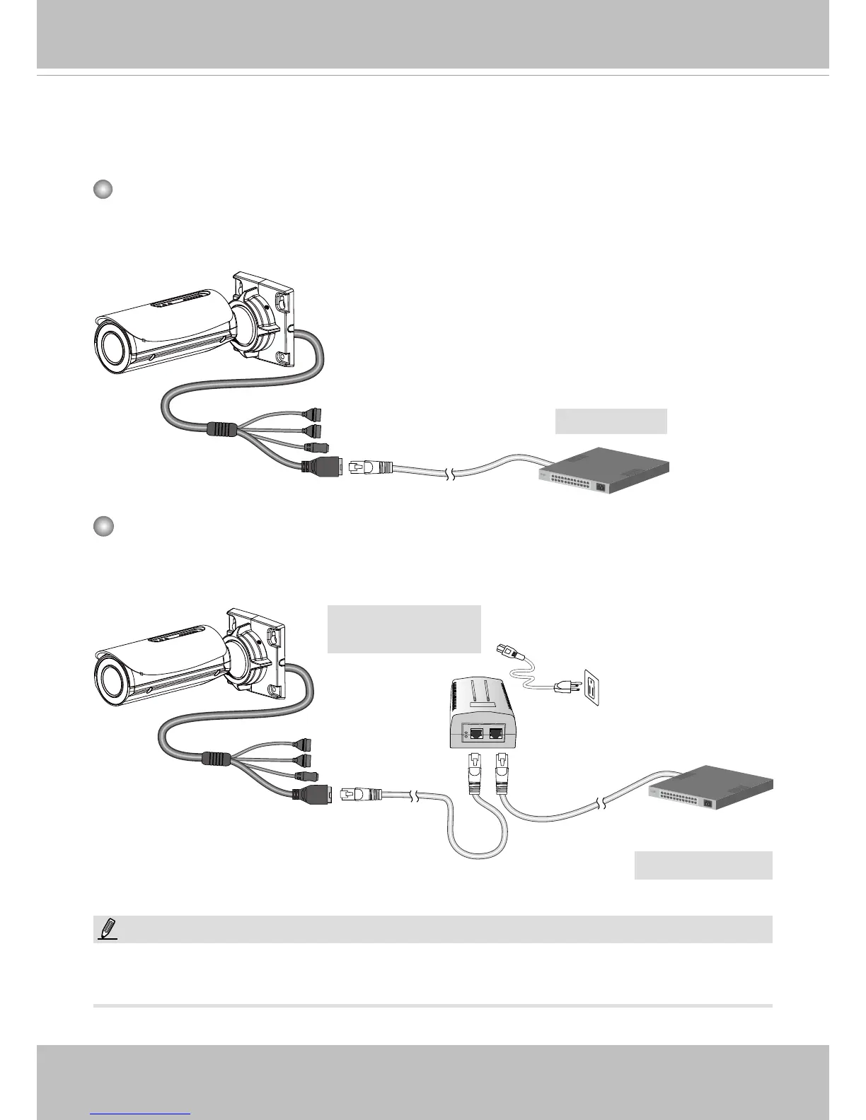 gle Ethernet cable. Follow the below illustration to connect the Network Camera to a PoE-