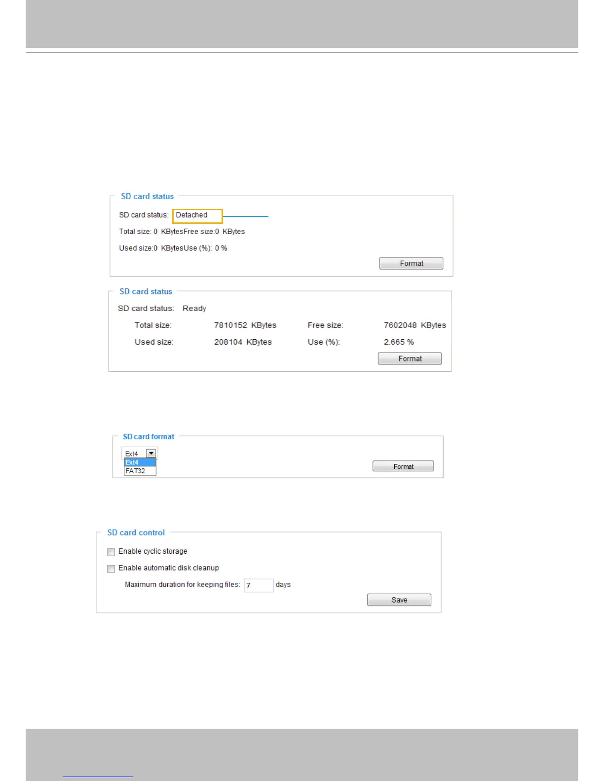 For example, if you enter “7 days”, the recorded les will be stored on the SD card for 7 days.