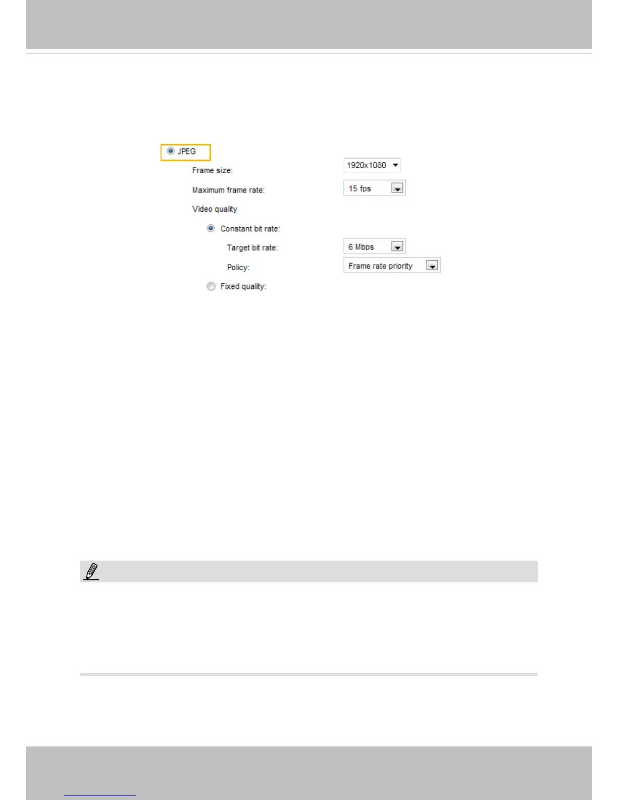 bandwidth consumed for transmitting motion jpegs. The conguration method is identical to that
