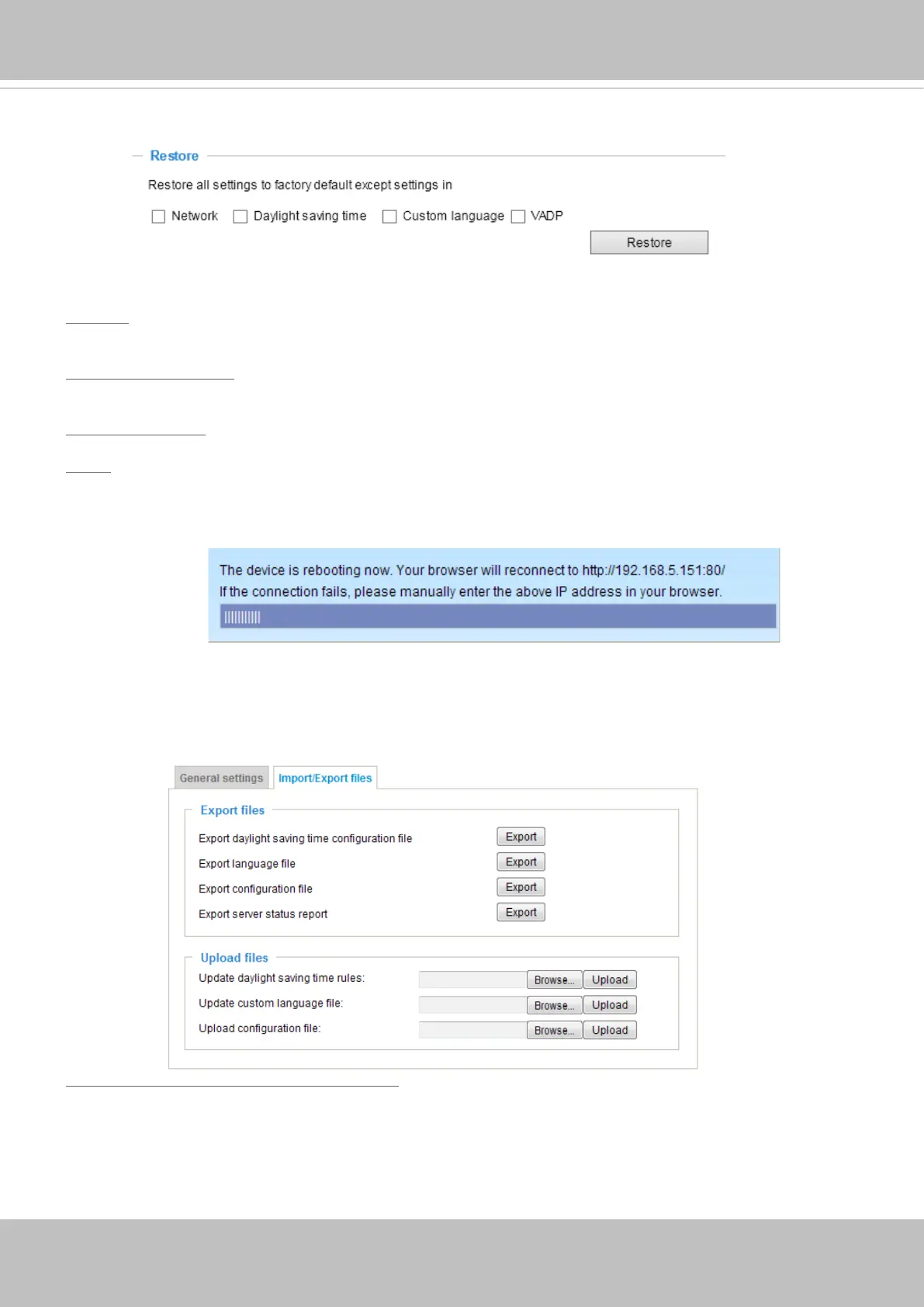 This feature allows you to Export / Update daylight saving time rules, custom language le, conguration