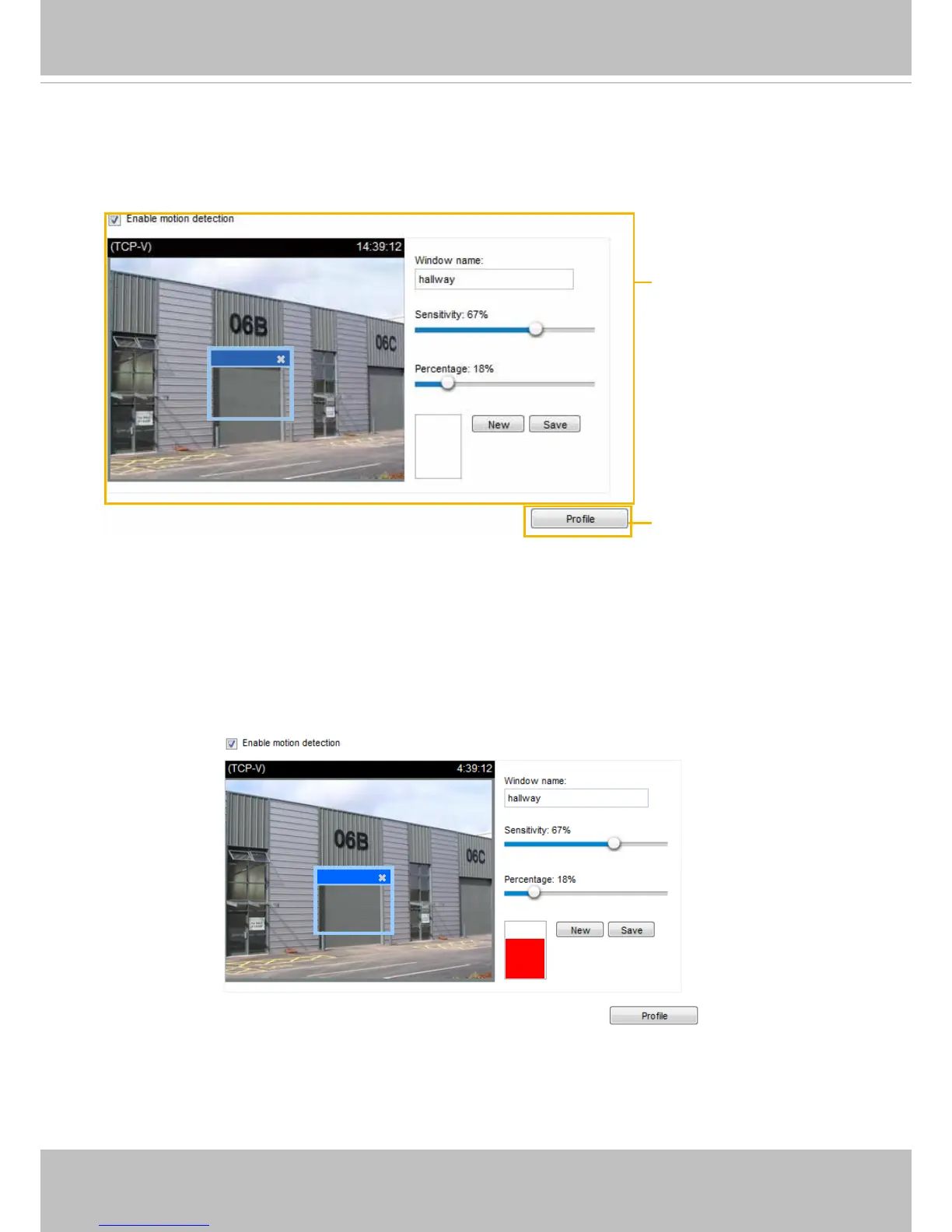 red bar rises. Meanwhile, the motion detection window will be outlined in red. Photos or videos can be