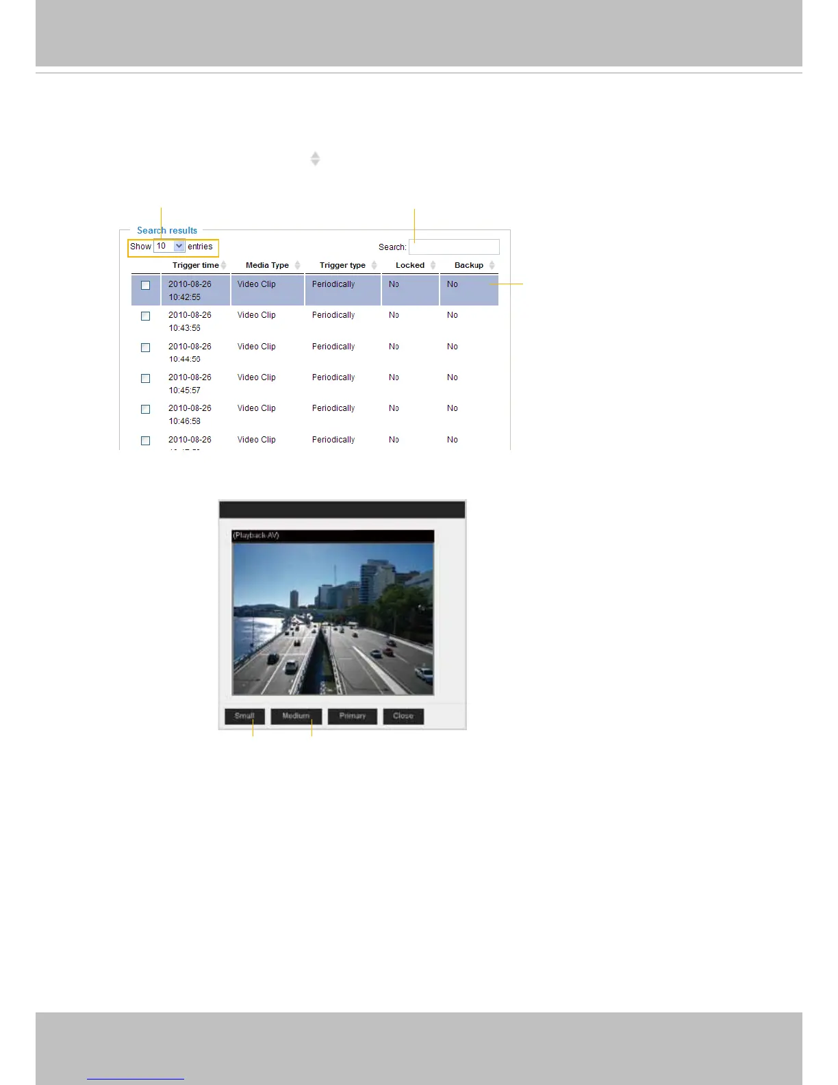The following is an example of search results. There are four columns: Trigger time, Media type,