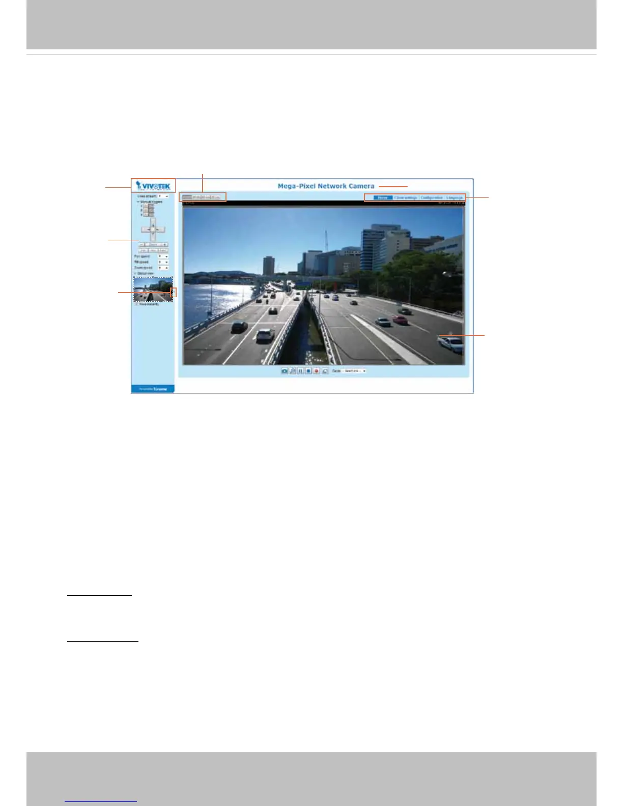 VIVOTEK INC. Logo, Host Name, Camera Control Area, Configuration Area, Menu, and Live